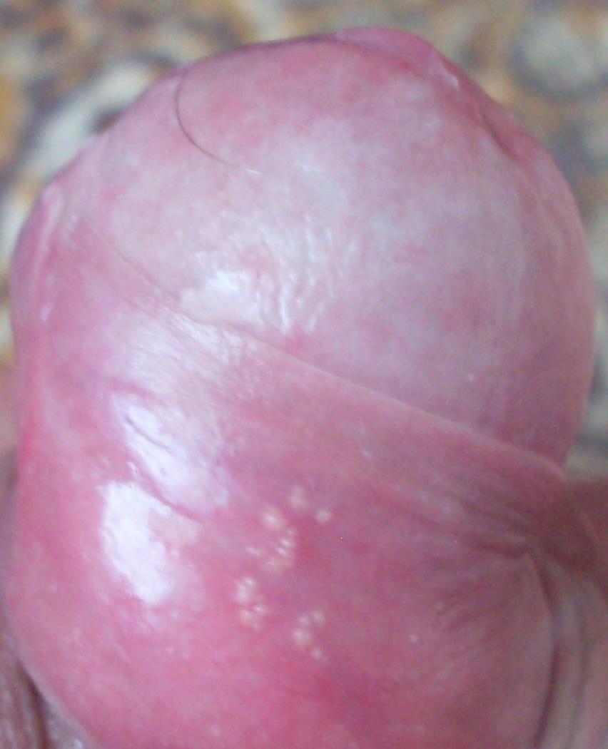 У меня после полового акта,недельки через 2 ,на коже головки члена,появились белые маленькие прищи,они розмещены в одном месте и групами,иногда чувствуеться роздражение.