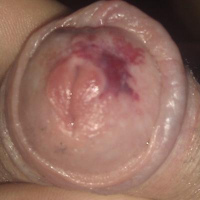 Здравствуйте. Полторы недели назад после секса появилось красное пятное на головке члена, как будто была содрана кожа. Постепенно пятно проходило, но вчера появилось новое, очень темное, бордового цвета. Как будто произошло кровоизлияние под кожу. Спустя пол дня появился странный дискомфорт.