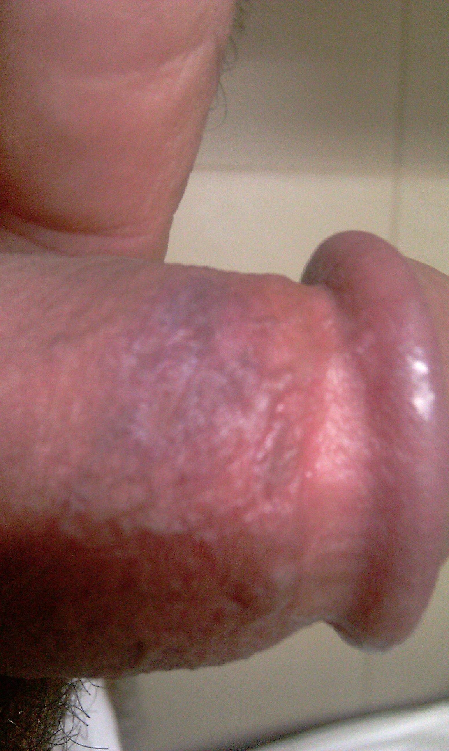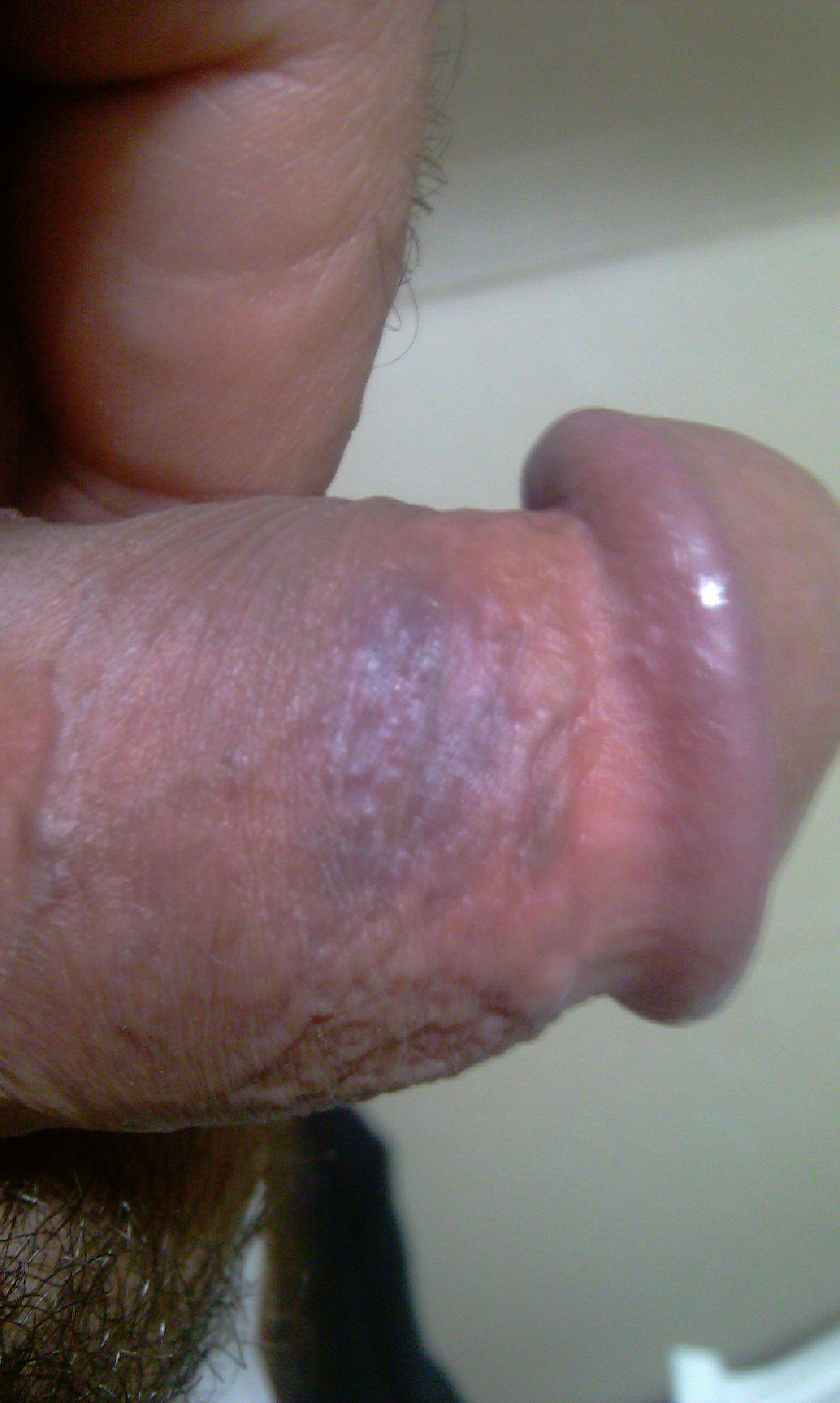 У меня следующая проблема: четыре месяца назад на половом члене появилось пятно, очень напоминающее кровоподтек, размером приблизительно 1,5Х1см. Появилось одномоментно, ничего травмирующего перед этим не заметил. Не возвышается над уровнем кожи, не болит, не доставляет дискомфорта, не растет в размерах, только поменяло цвет на более темный. Подскажите, пожалуйста, может ли это действительно быть просто синяк (смущает тот факт, что слишком долго держится - уже 4 месяца) или это может быть что-то более серьезное (рак, ЗПП и пр.) Фото прилагаю.