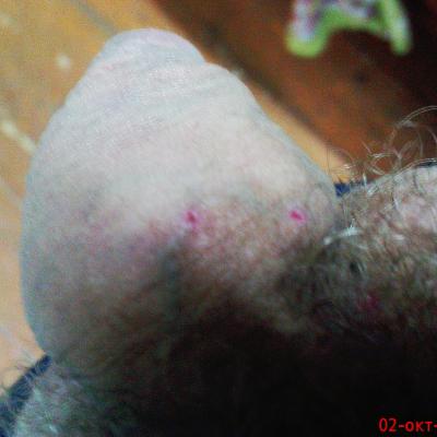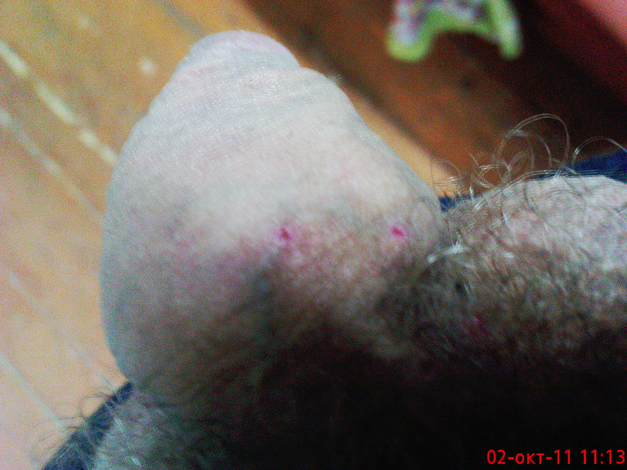 здраствуйте такая вот проблемаЮнедавно заметил красное пятнышко на головке и крайней плоти!!немного болезненно! начал промывать водой несколько раз в день!вроде проходят!но сегодня заметил и на самой коже члена такие же!не зудят!! секс был тока с постоянной девушкой!сфотографировал пятна которые на члене!! сходил бы седня к урологу но воскресенье и поликлиники не работают! последние полгода девушка была постоянная!фото прилагаю!надеюсь вы мне обясните что это!потому что искал в инете ниче подобного не нашел!
