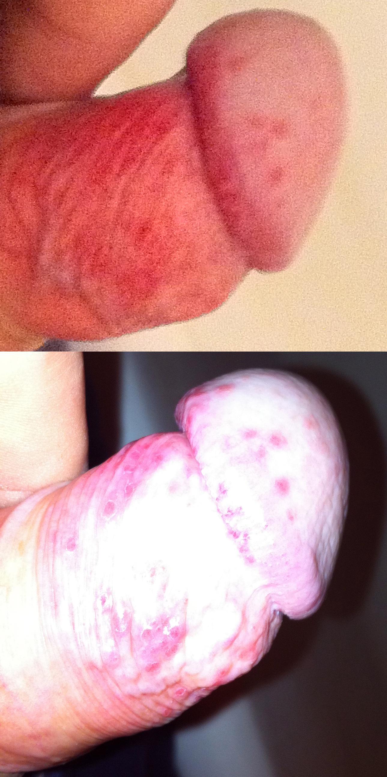 Добрый день! Сдавал анализы на все возможные виды заболеваний - все анализы пришли отрицательные. Но спустя какое то время обнаружил, сперва что после полового акта, а затем и просто без причины появляется вот такое раздражение (фотография прилагается). Параллельно держится температура 37 которая поднимается во второй половине дня.