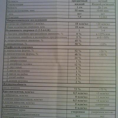 Скажите, пожалуйста, возможно ли зачатие с такой спермограммой. На сколько плохи результаты? Муж был прооперирован в декабре 2010 года - водянка оболочек левого яичка.
