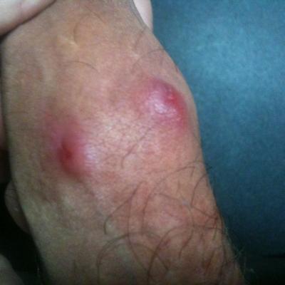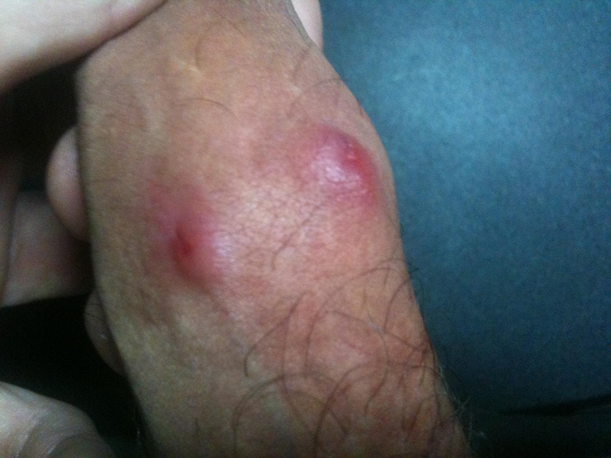 По словесному описанию я бы сказала - герпес. на фото - воспалительные инфильтраты.