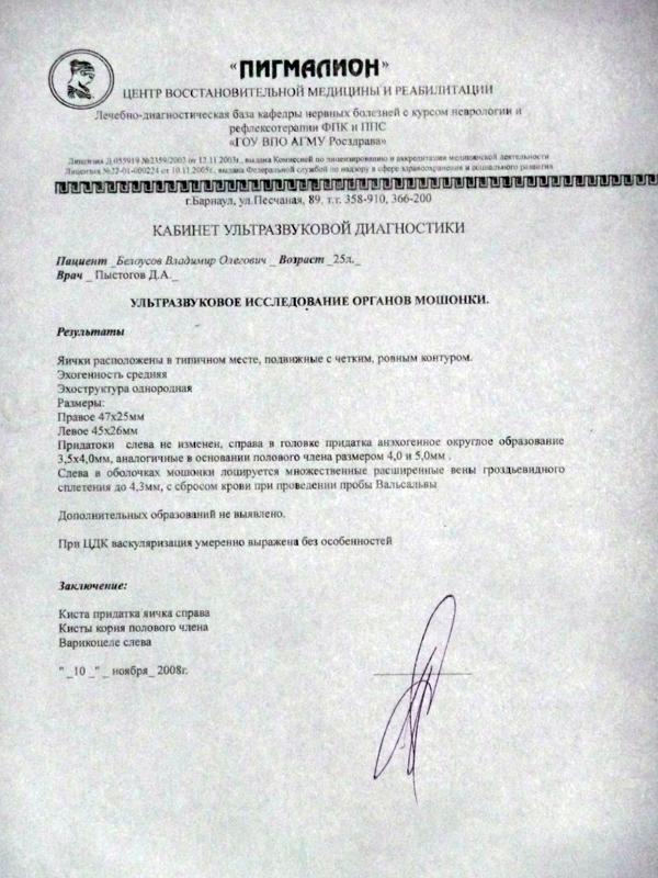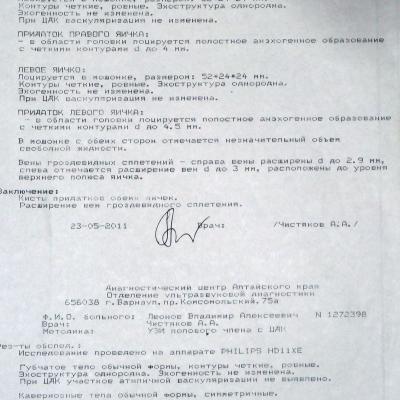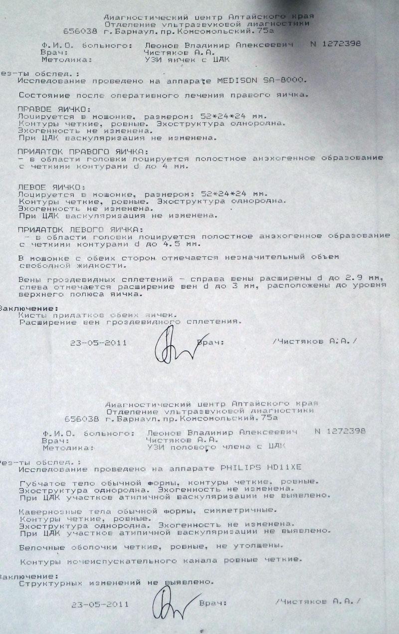 В 2008 году по тем же признакам обнаружели варикоцеле с лева кисту придатков и корня полового члена. Сделали операцию по иванесовичу. через две недели все востановилось просто на 5, даже сперма стреляла. Потом постепенно болячка начала опять подкрадываться. Обратился, сдал анализы на вич, нормально в диагностическом центре сделал узи, говорят нормально, выписали импазу, пил два месяца, стало чуть получше со стоячкой, но все остальное осталось. При пиеме пипа виагра, лаверон, эффект обратный (вообще не стоит) через сутки нормально.