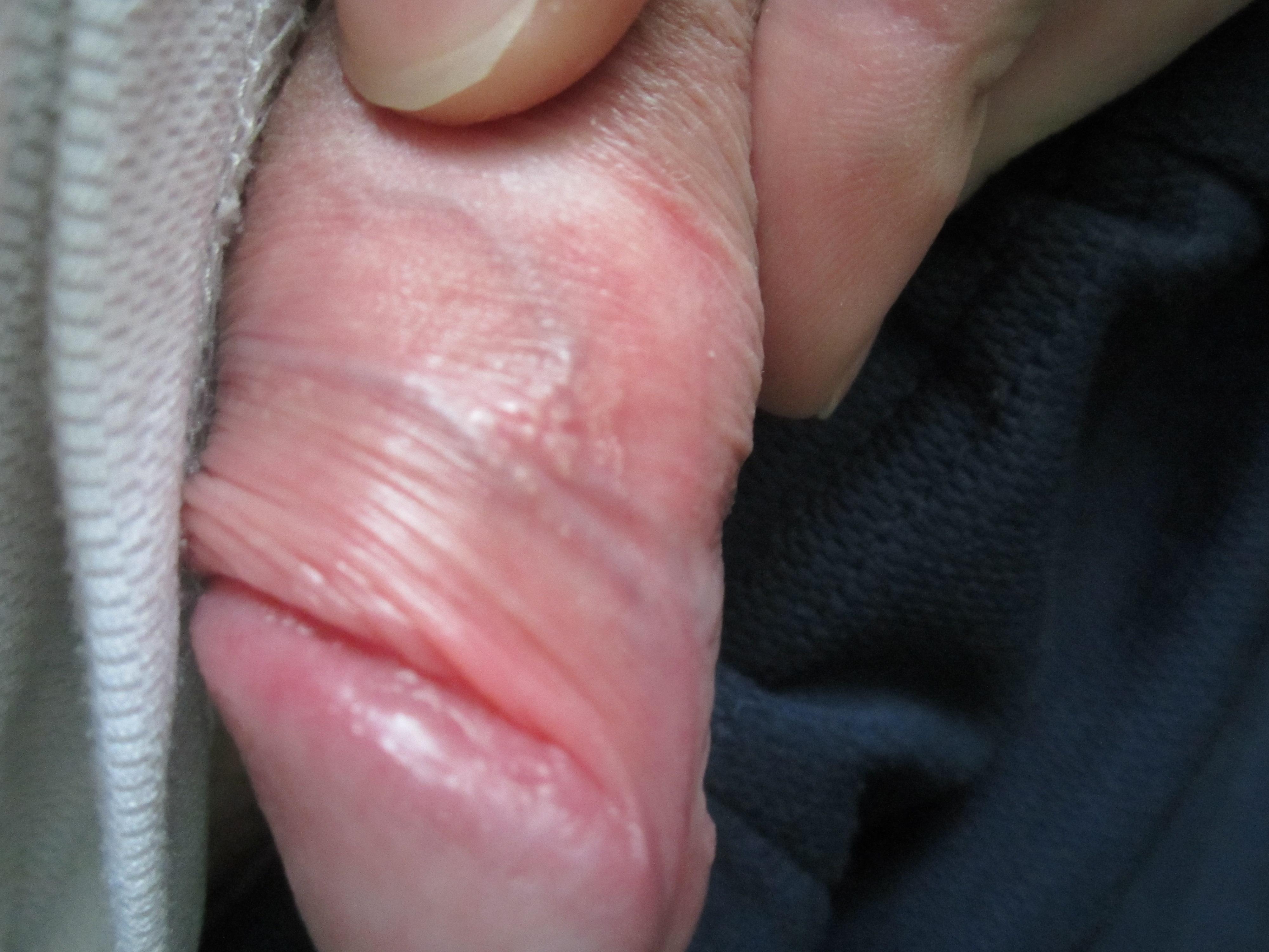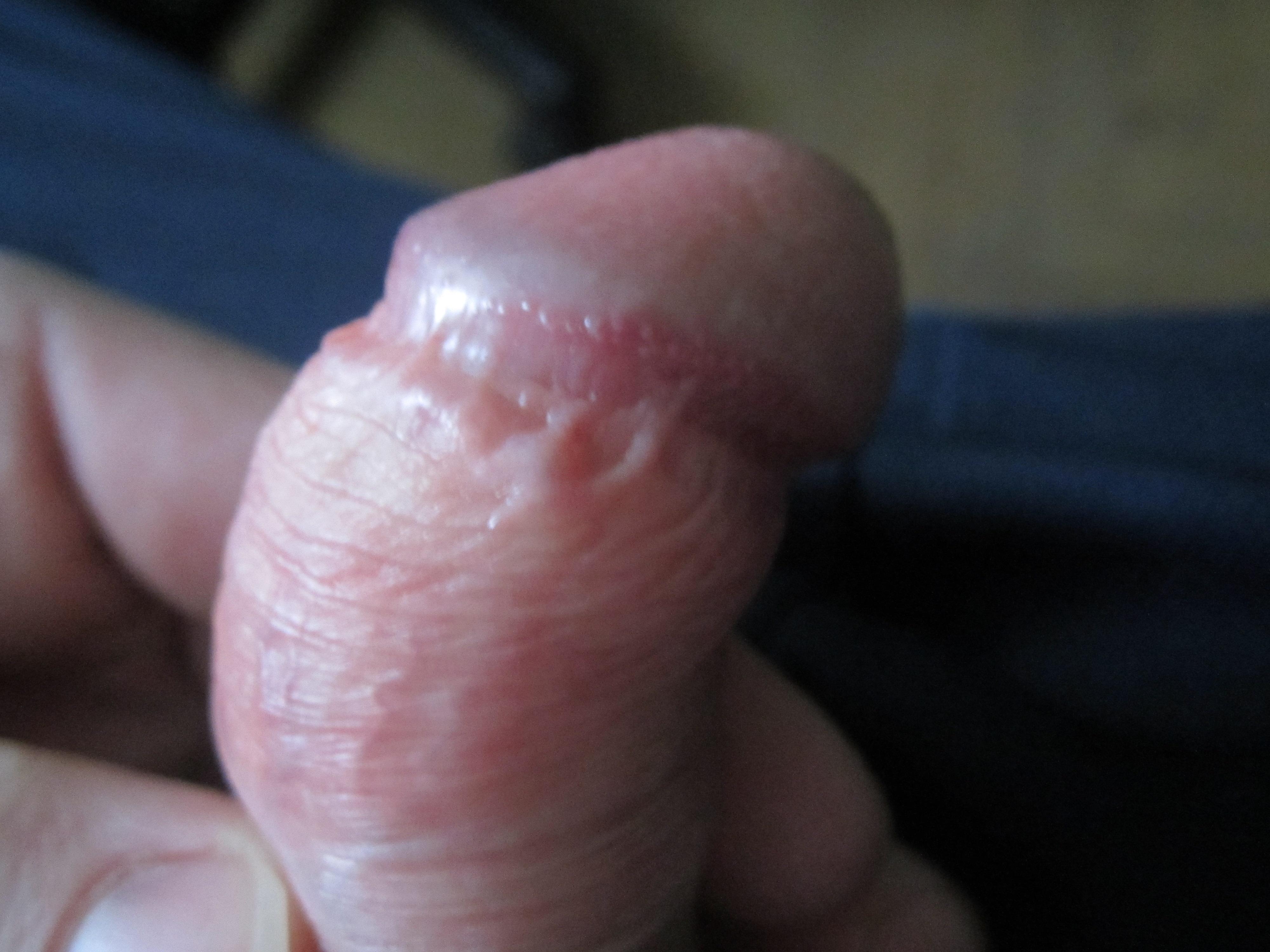 Кожа головки полового члена сухая..