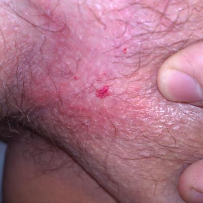 Около недели назад появилось такое образование в паху, чтобы это могло быть? Не болит, на ощупь мясистое, чуть влажнее окружающей кожи. Расположено рядом с тем местом где начинается мошонка. Размер небольшой 2-3 мм.