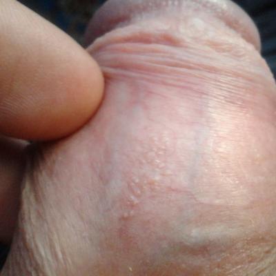 Пузырьки на коже члена. Что это? вообще не беспокоит.. К кому обращаться? и можно ли вылечить в домашних условиях?
