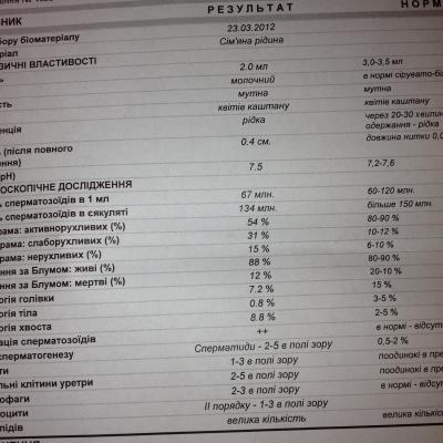 Здравствуйте!планируем с мужем ребенка,вот уже год ничего не получается.муж сдавал спермограммы последняя вроде бы улучшилась,но все равно есть отклонения.он же говорит что все нормально!я Вас очень прошу помогите разобраться.возможна ли беременность,что посоветуете делать? (прикрепленный файл на украинском языке)