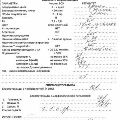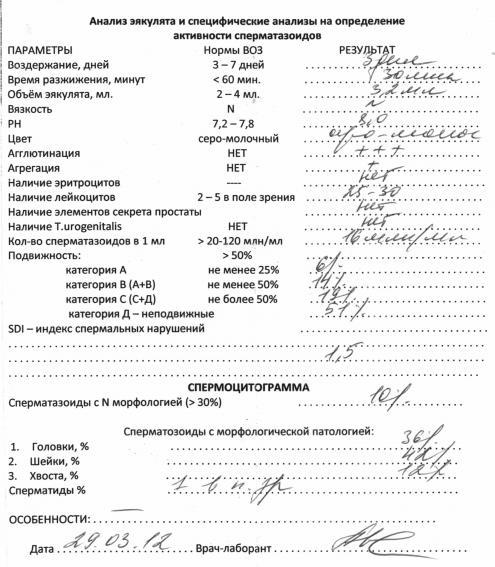 Прошу Вас проконсультировать по анализам спермограммы. Как лечить, в результате чего такие анализы получились? Воздержание было 3 дня.