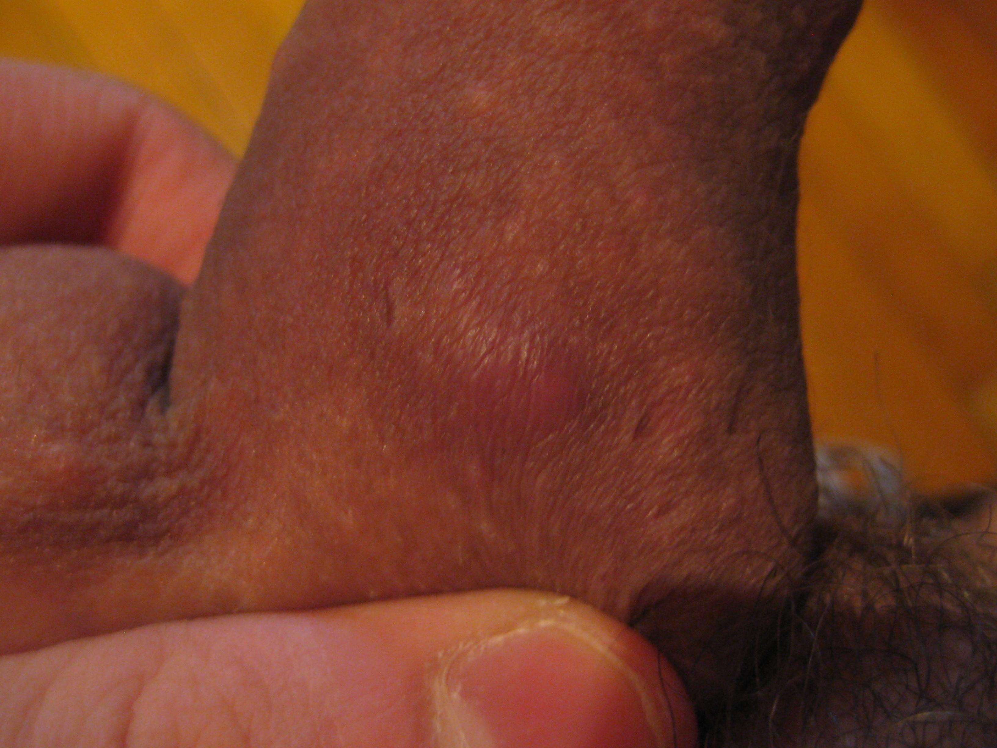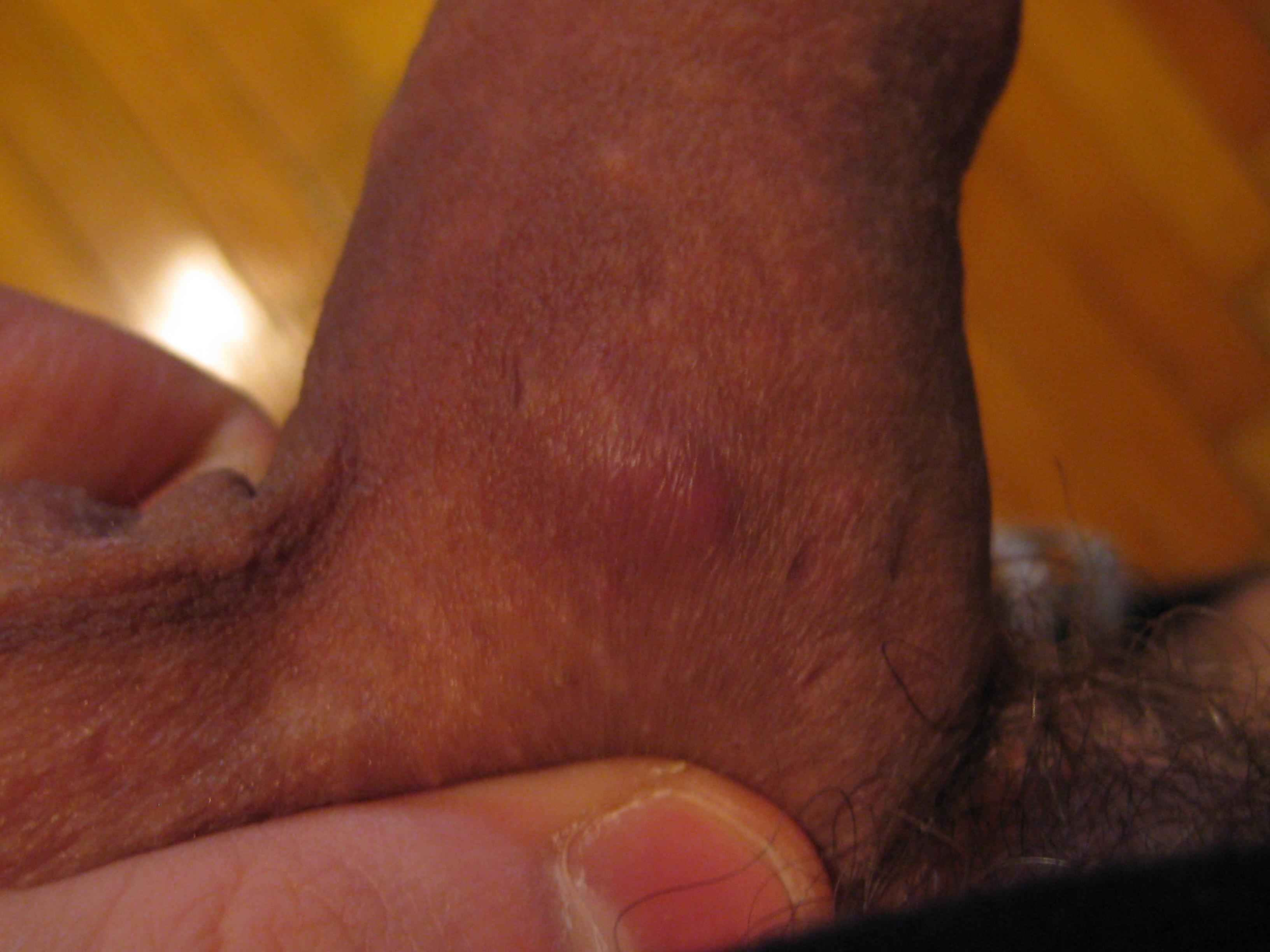 Несколько недель назад у основания полового члена появился маленький прыщик, потом сам прошел (я его не трогал и не выдавливал). Потом на этом же месте появилось какое-то уплотнение красного цвета. Никаких болезненных или дискомфортных ощущений не вызывает, ну естесственно за исключением вообще своего наличия. Держится уже недели две или даже больше, не знаю, что с этим делать. Половых контактов уже не было достаточно продолжительное время.