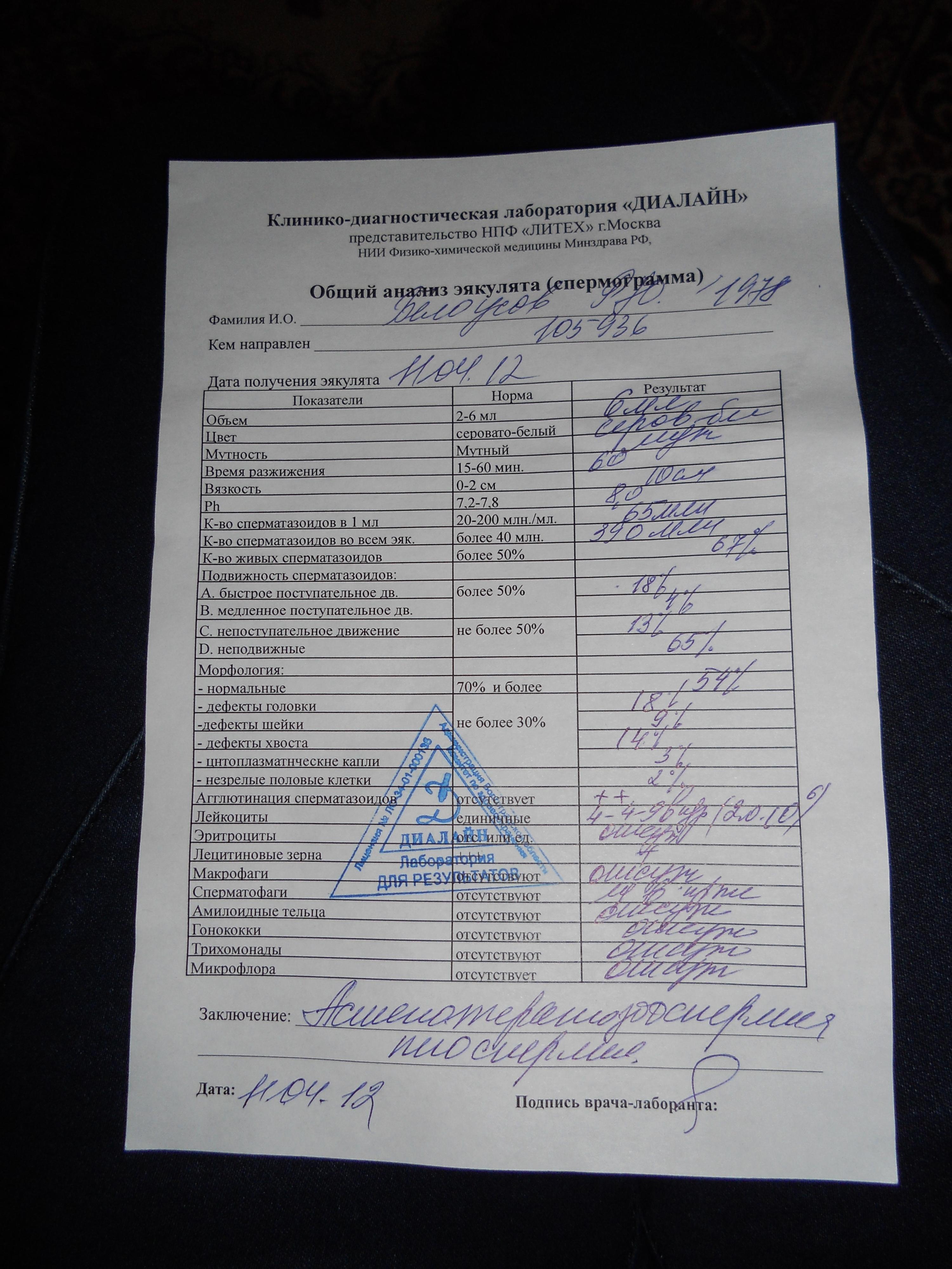 расшифровать спермограмму