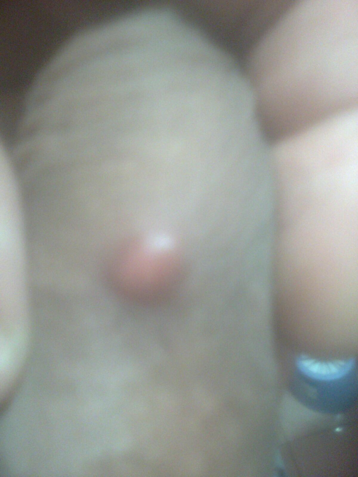 Похож на образовывающийся гнойник круглой формы.. с наружи на половом члене с боку посередине..при надавливании чуть боль.. Последний раз был оральный секс 15 апреля .Может быть от этого?
