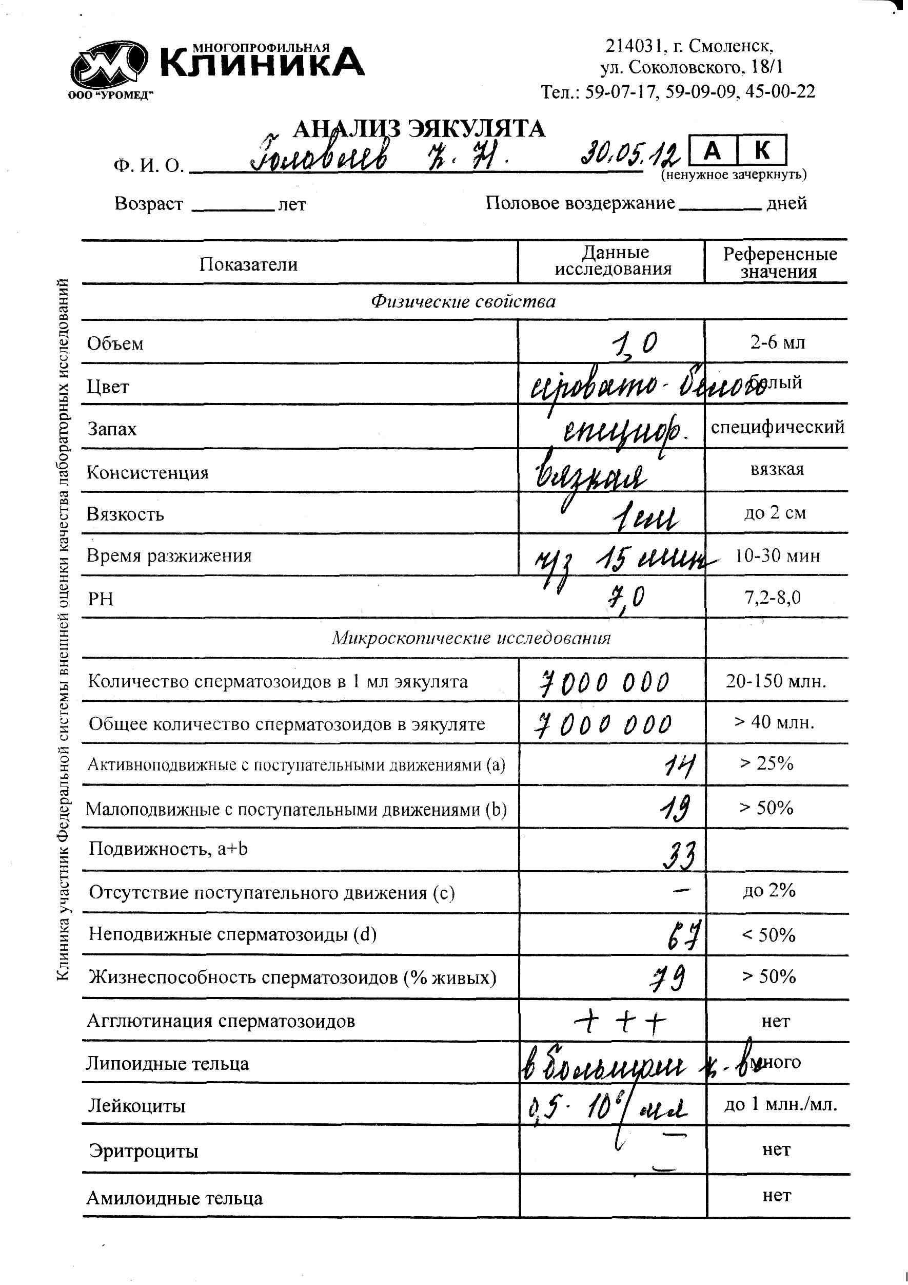 Я прикрепил к этому письму анализ своей спермограммы, я так понимаю заключение не из приятных. Что вы можете сказать по этому поводу. Мы с женой очень хотим иметь детей. Жду вашего ответа.