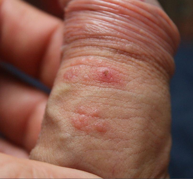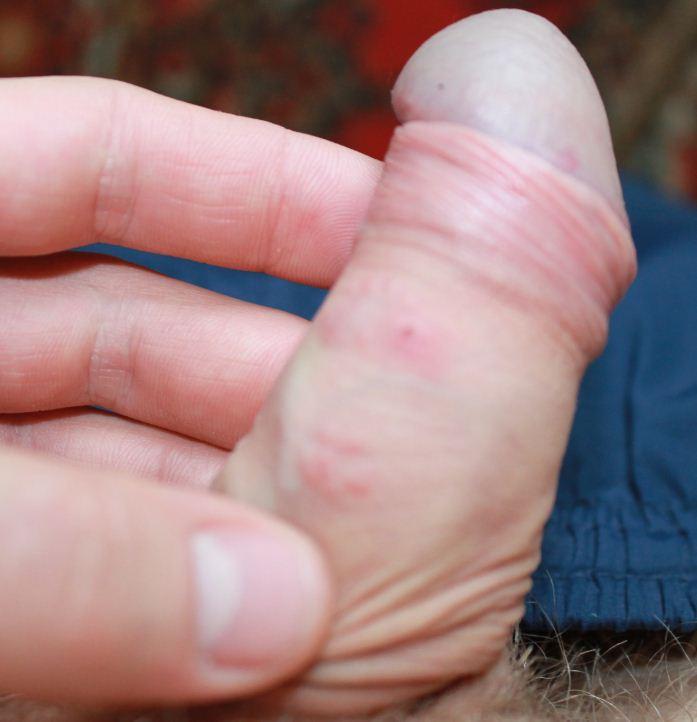 Здравствуйте! Доктор, в ближайшее время у меня нет возможности обратиться к врачу. Будьте добры просмотрите мою проблему. 2 недели назад у меня был секс защищённый. Примерно через 4 часа после секса на половом члене выскочила болька,сжимая её она побаливает, и ещё несколько возле неё но поменьше. Что-то вроде сыпи. Они меня совершенно не беспокоят. Может это от латекса? Может поможет эта информация: изредка бывает на головке полового члена покраснение, выделение белой жидкости не приятно пахнущей,зуд. Но это исключительно после секса если не тщательно промыть головку п.ч. И если не соблюдать гигиену. В противном случае всё в порядке. Веду половую жизнь только с одной девушкой. У не было подозрение на молочницу, покупали флюконазол, всё прошло и в преть не беспокоит.Прилагаю фото.Спасибо огромное!!!