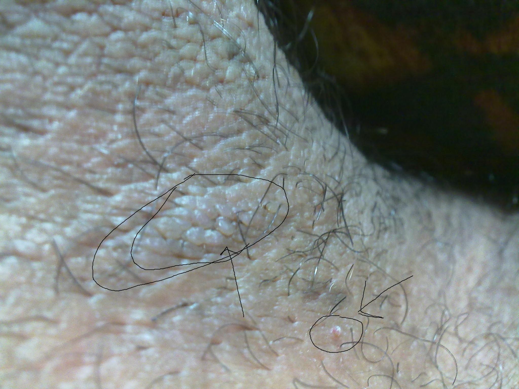 Здравствуйте доктор мне 18,у меня вокруг члена высыпания,это похоже на папулы..НО на теле есть папиломки и в паху есть 1 маленькая,я выделил на фото!