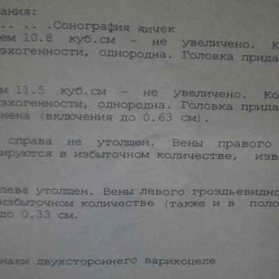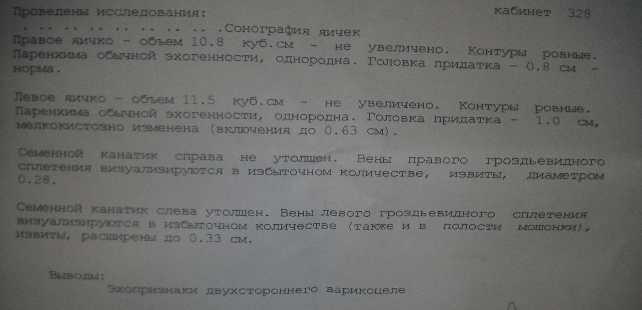 Скажите, пожалуйста, по результатам УЗ какая у меня степень варикоцеле. И нормальный ли такой диаметр яичек в 18 лет.