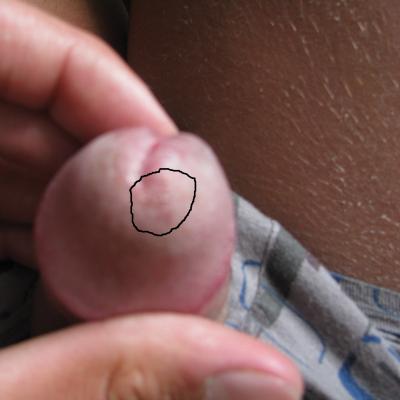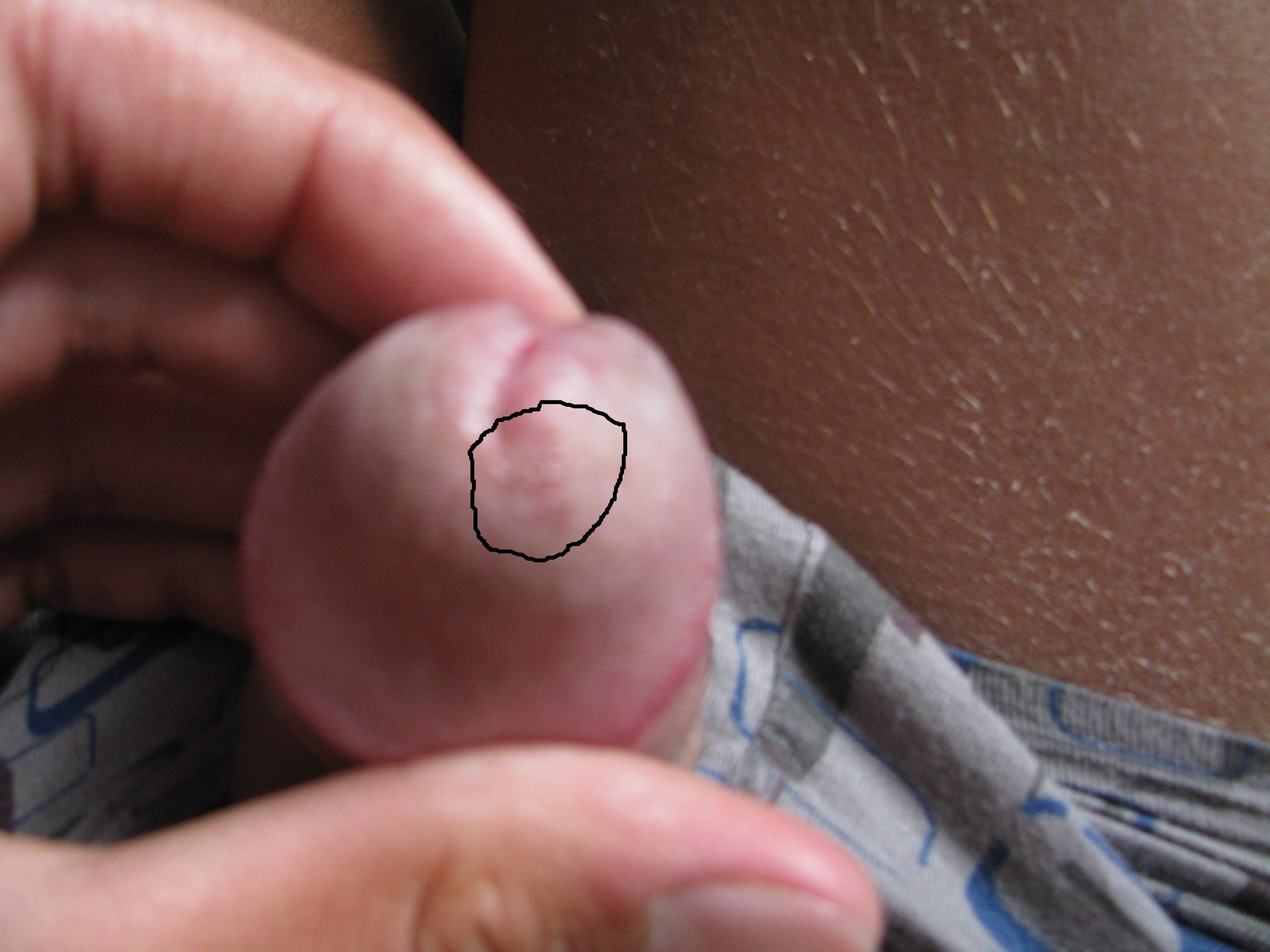 Подскажите что за пятно на головке коричневатого цвета, вроде уже давно у меня, не болит, не чешется.