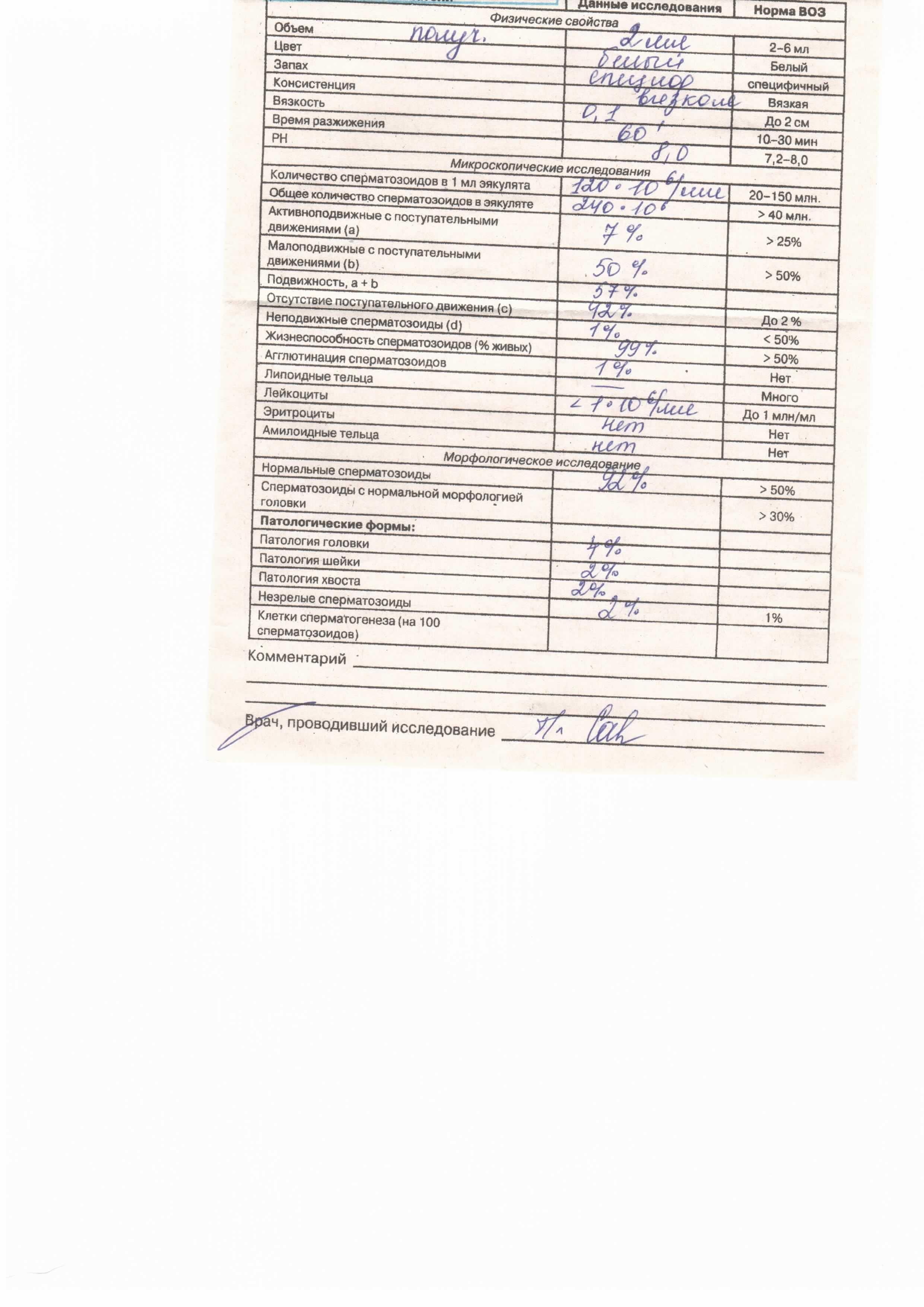 Оцените пожалуйста данный анализ эякулята моего мужа. Три года не можем зачать. Возможно ли при таких данных зачатие.