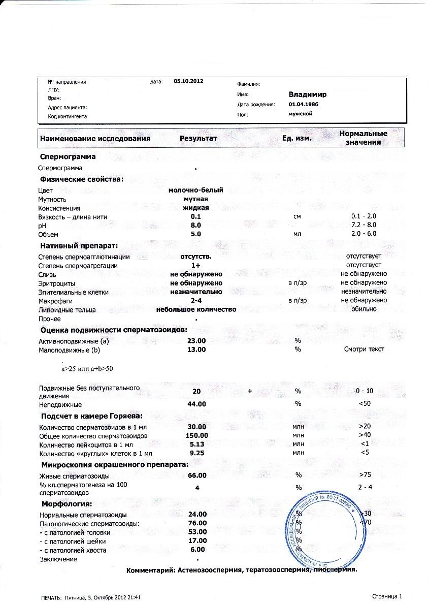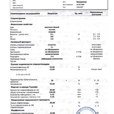 На днях сделал спермограмму.
