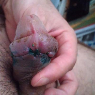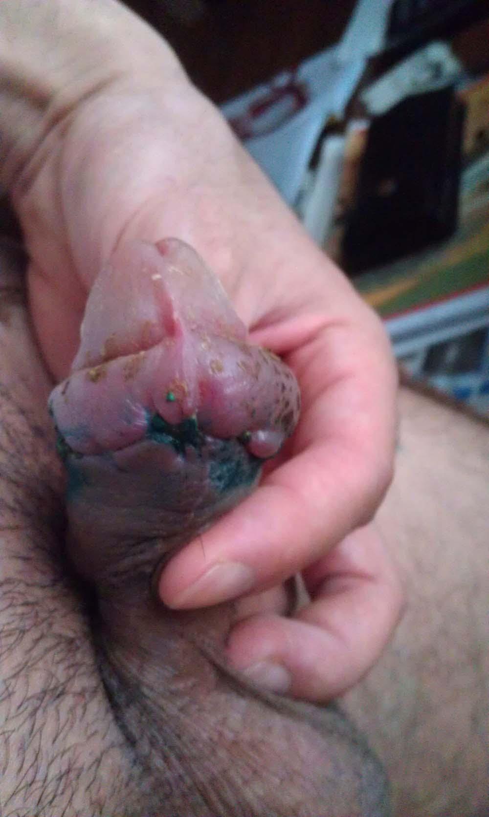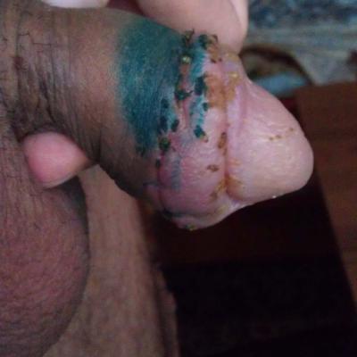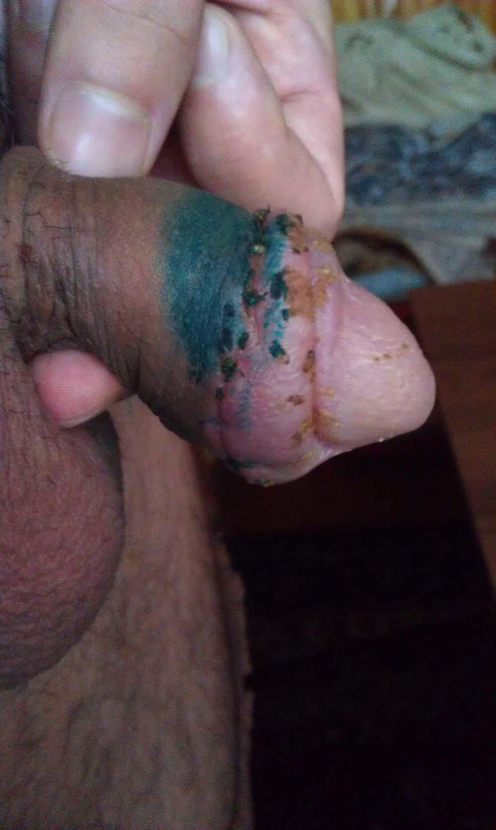 Здраствуйте доктор! Мне сделали обрезание 20 дней назад. Но отек все еще сохраняется. Болей никаких нет, если не считать чувствительность головки. На фото ПЧ выглядит таким грязным- из-за остатков моргонцовки и зеленки.
