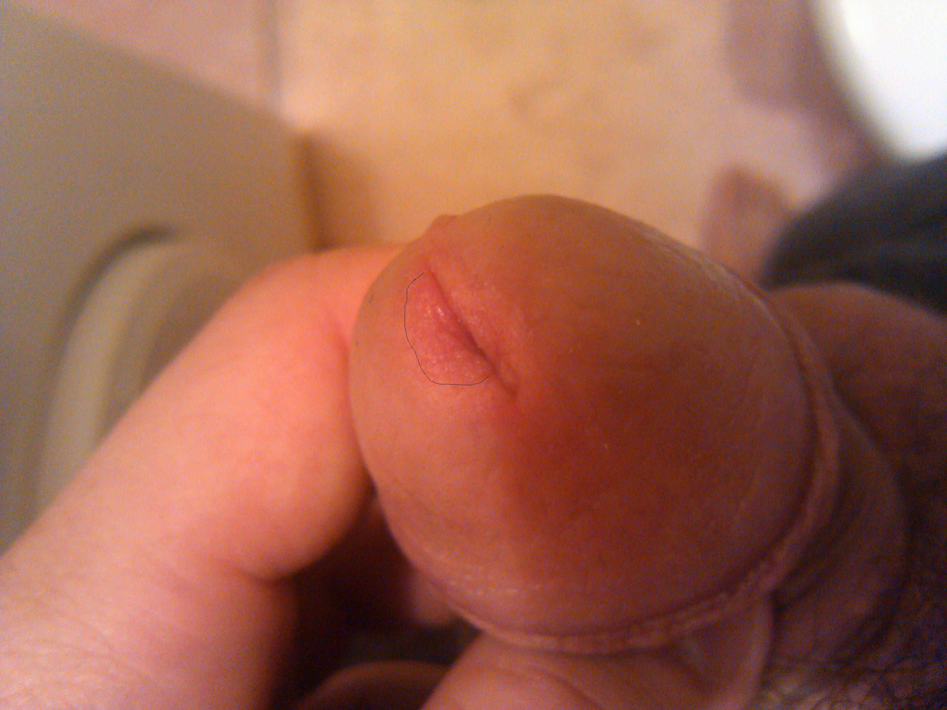 вокруг отверстия уретры кожа отличается от другой(как будто расчесанная)больше с лева уже года 3 так.