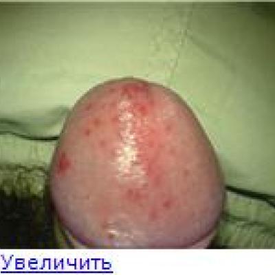 Здравствуйте. У меня такая проблема: появились красные пятна на головке члена, партнер один, подскажите пожалуйста что это? фото прилогается