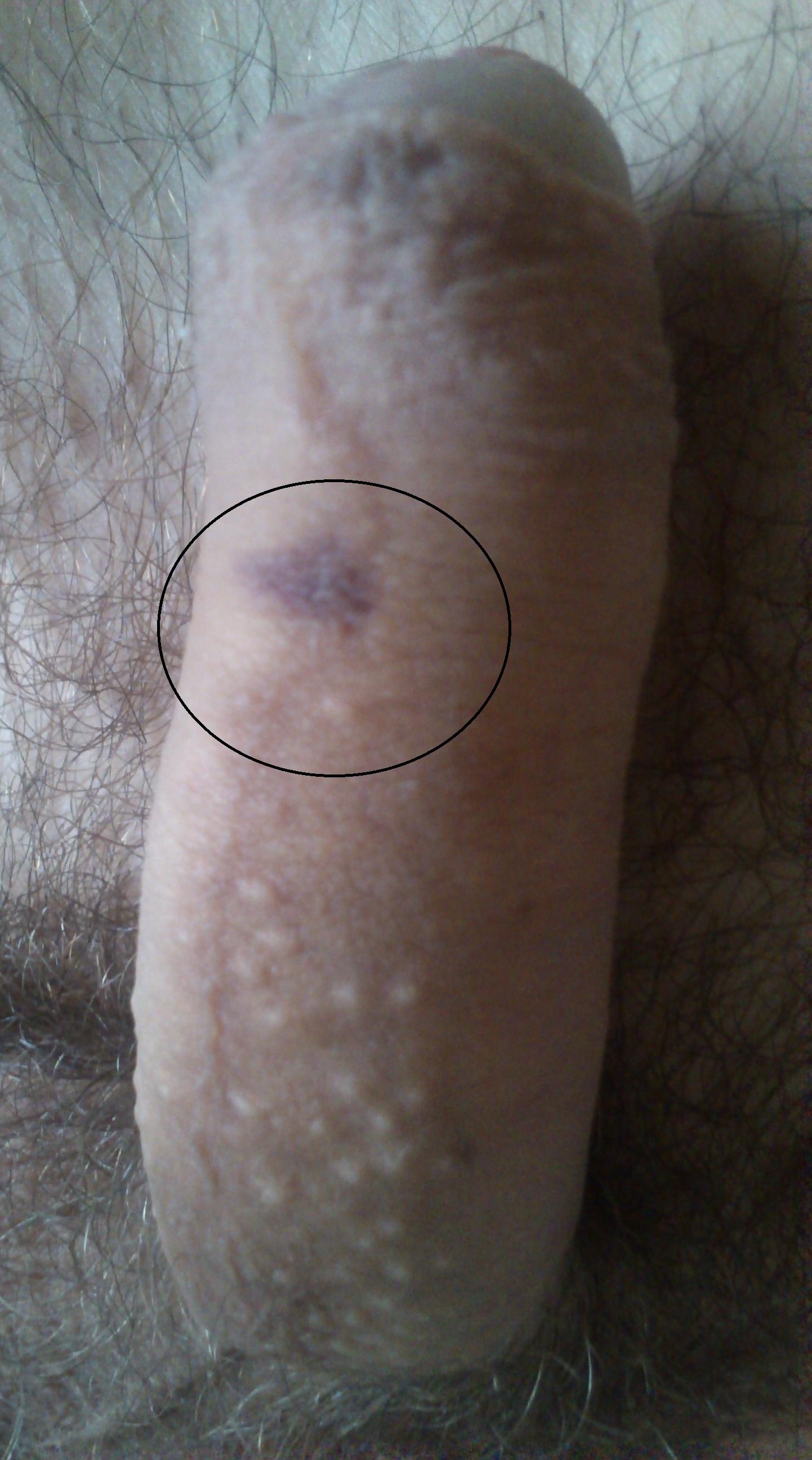 Дня 3 назад, после полового акта в презервативе появилось пятно бордового цвета. Что это может быть? не чешется и не болит.