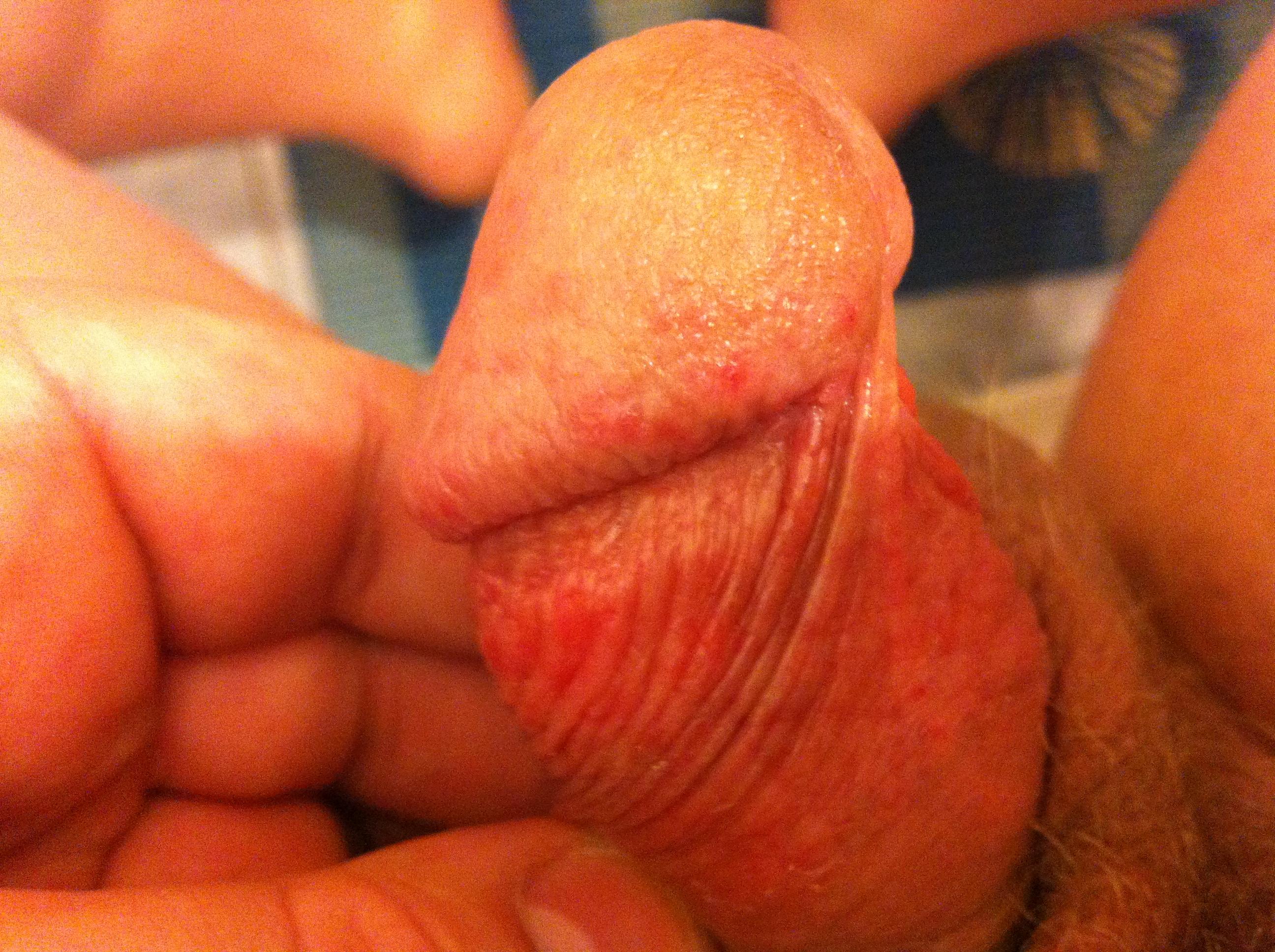пару дней назад была интимная связь со своей женой (без резинок), после чего у меня на члене (через сутки) появилась потертость возле головки, через пару часов после появились маленькие белые прищики на головке и рядом, на сдел день они покраснели и я начал пить супрастин на 3й день как бы кожа слезла и осталось патертост,(с женой 4 года в интимном плане,других небыло)(есть одна зацепка но не точно,жена начала принимать от молочницы какой то гель) (что это может быть и как это лечить?)