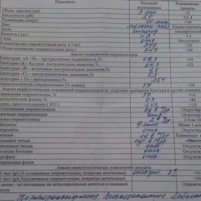 Здравствуйте сдал анализы и очень хотел бы узнать результат! Подскажите есть какие нибудь отклонение которые могут помешать нам иметь детей?