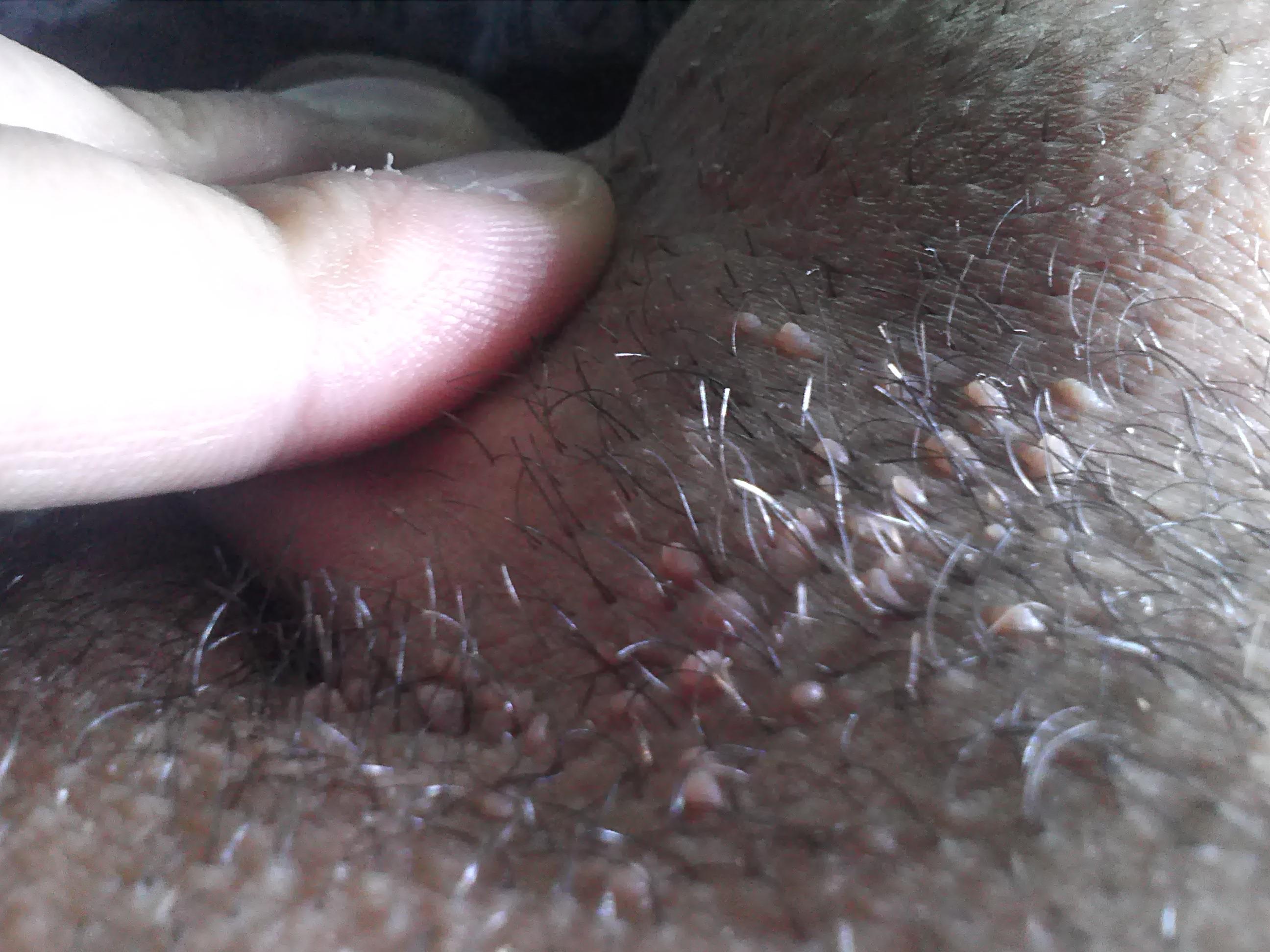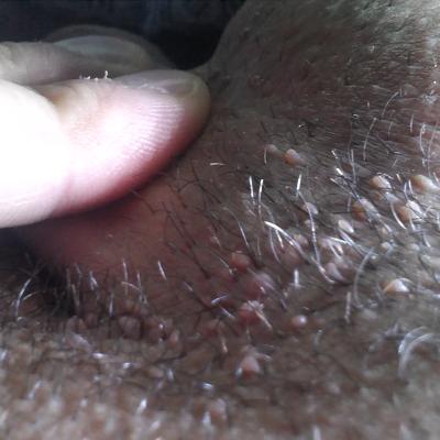 Здравствуйте! Появились не понятные образования в районе лобка, члена, с переходом на машонку. Болевых ощущений нет, зуда тоже нет, при сильном выдавливании идет кровь! Брею область машонки и лобка. Секс только со своей супругой, партнёрш не меняю. Что это вообще такое? Может это раздрожения от бритья? Заранее, благодарю!Фото прилогаю.