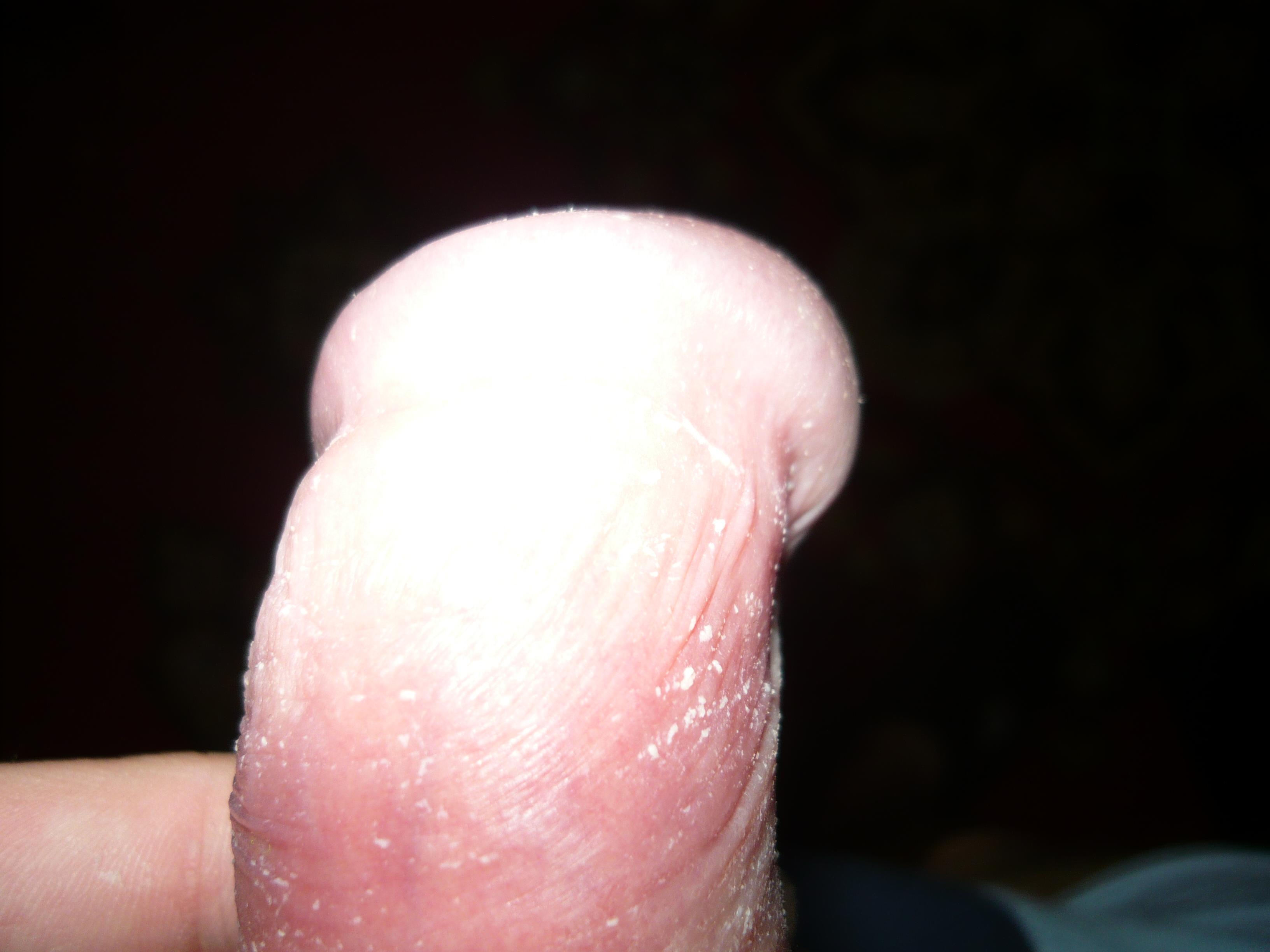Здравствуйте, заметил на головке полового члена белый налет, с резким не приятным запахом, образуется примерно за сутки, в виде образования длинной не более миллиметра по всему радиусу головки. Мочеиспусканию не мешает, покраснений и боли. Даже и не представляю когда он мог появиться. Заметил около месяца назад. Очень меня волнует это, ответьте пожалуйста. Фото высылаю.