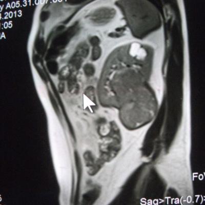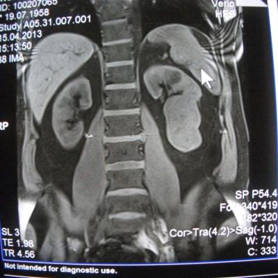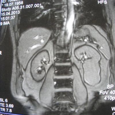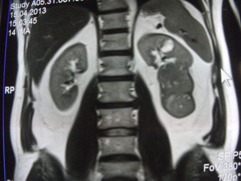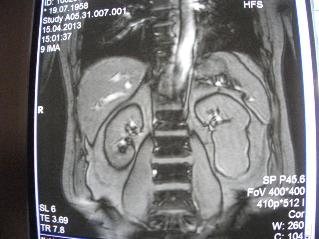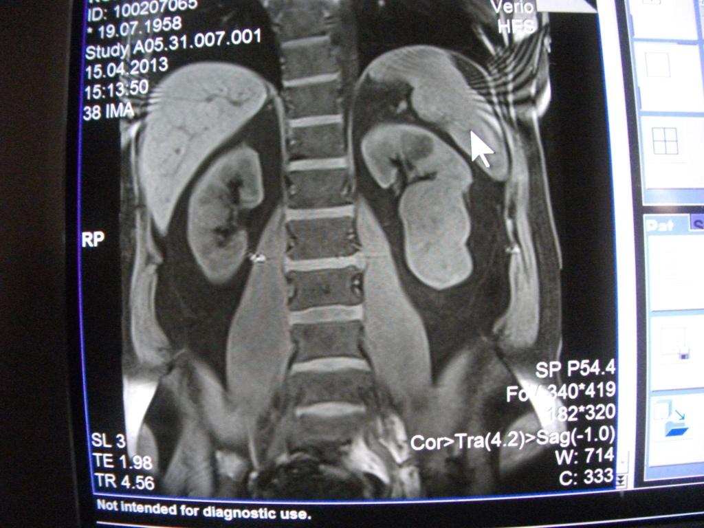 такое заключение: Левая почка: расположена обычно, увеличена, общими размерами около 13х5,5см. В области средней и нижней трети почки определяется объёмное образование неправильной формы, деформирующее наружный контур почки, распространяющиеся с чашечно-лоханочную систему. Опухоль имеет четкие неровные бугристые контуры с наличием псевдокапсулы, неоднородной структуры с признаками распада, максимальными размерами около 78,7х47х48мм
