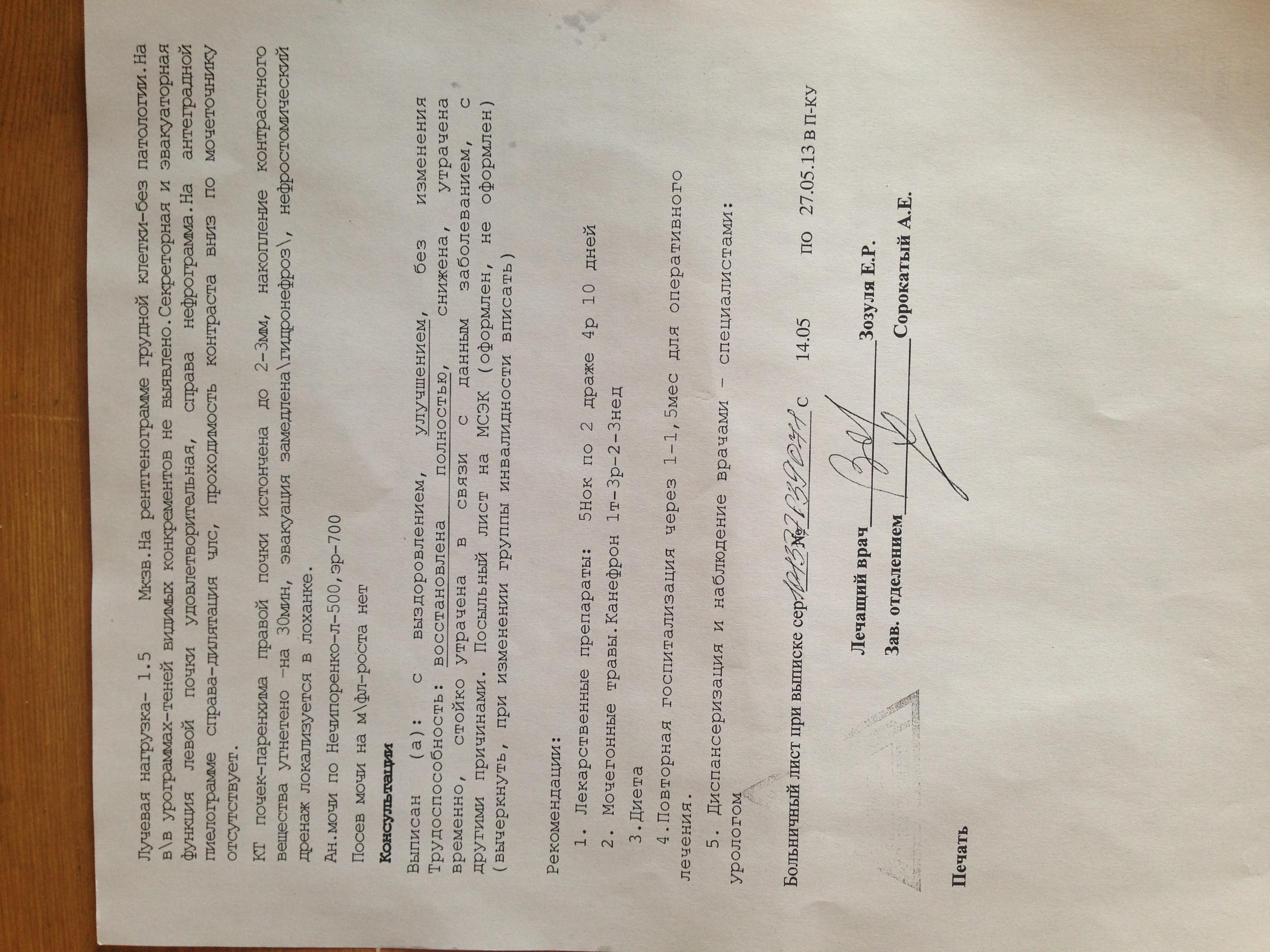 в начале мая попала в больницу с высокой температурой, после обследования был поставлен диагноз Гидронефроз. До этого почки никогда не беспокоили. Сейчас выписана из больницы с нефростомическим дренажем. Повторная госпитализация назначена на июль.