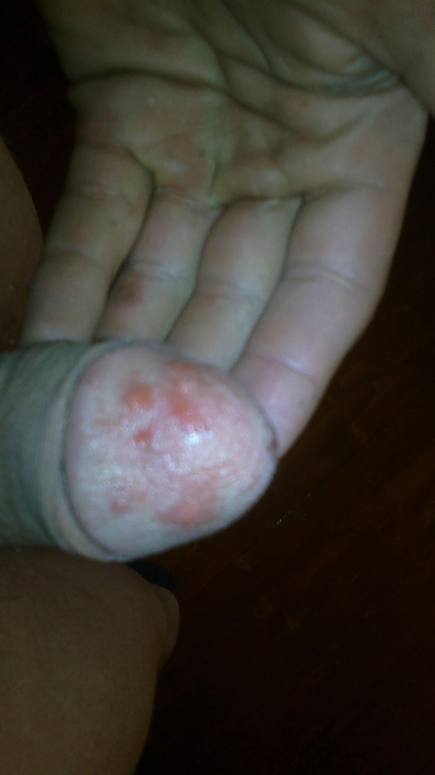 здравствуйте головка стала очень чувствительной прыщи появились около недель назад
