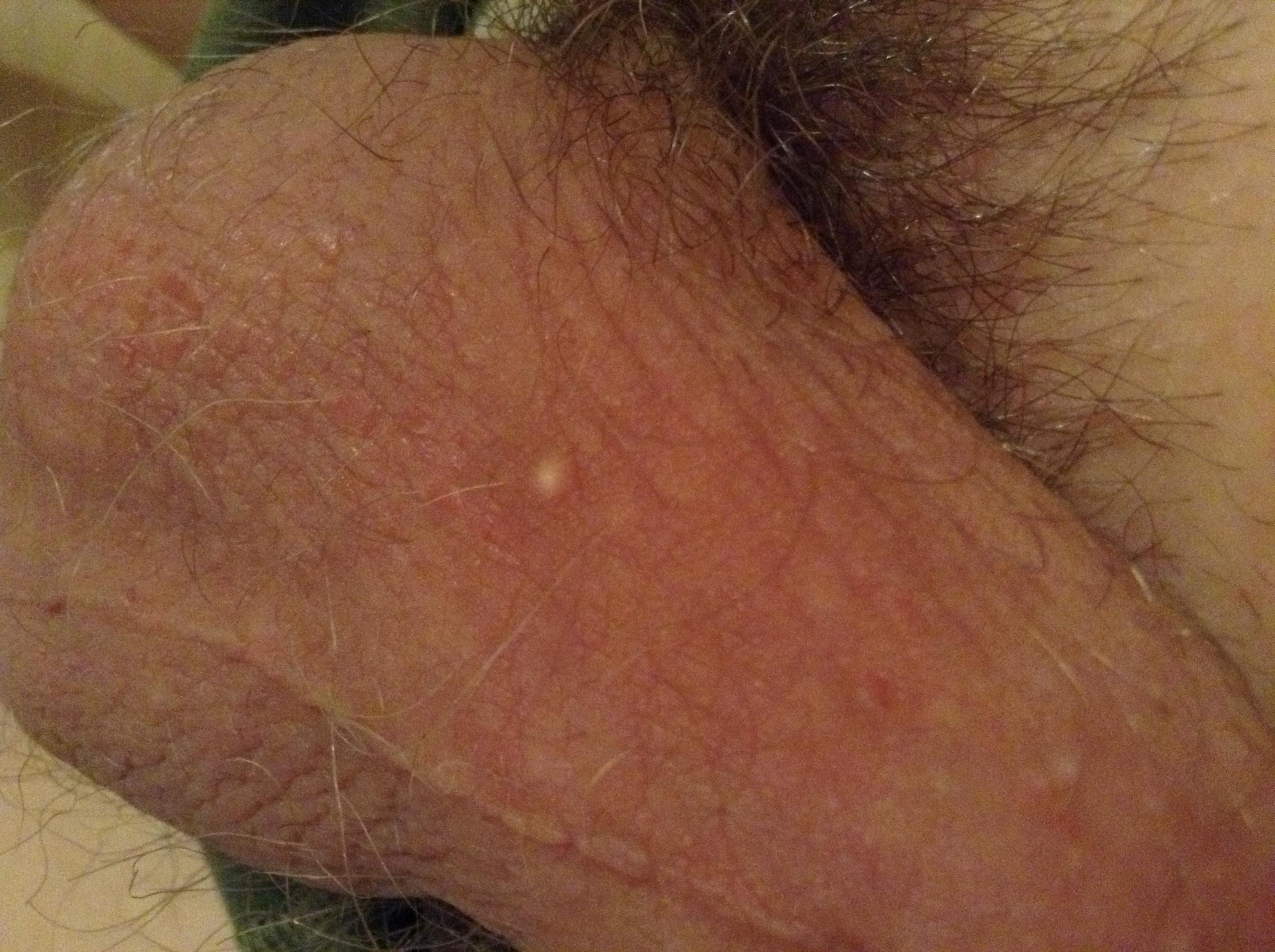 Месяца 2-3 назад появился белый шарик на мошонке. Достаточно твердый, если обхватить пальцами, частенько зудит, вроде немного увеличивается. Болезненные ощущения отсутствуют.