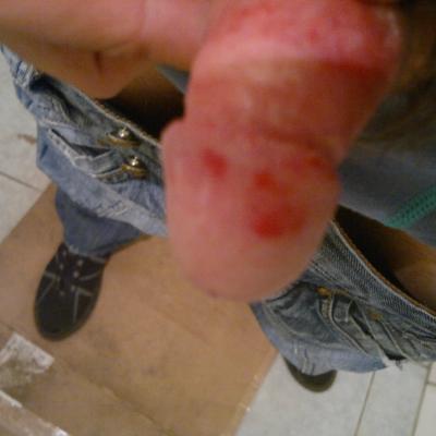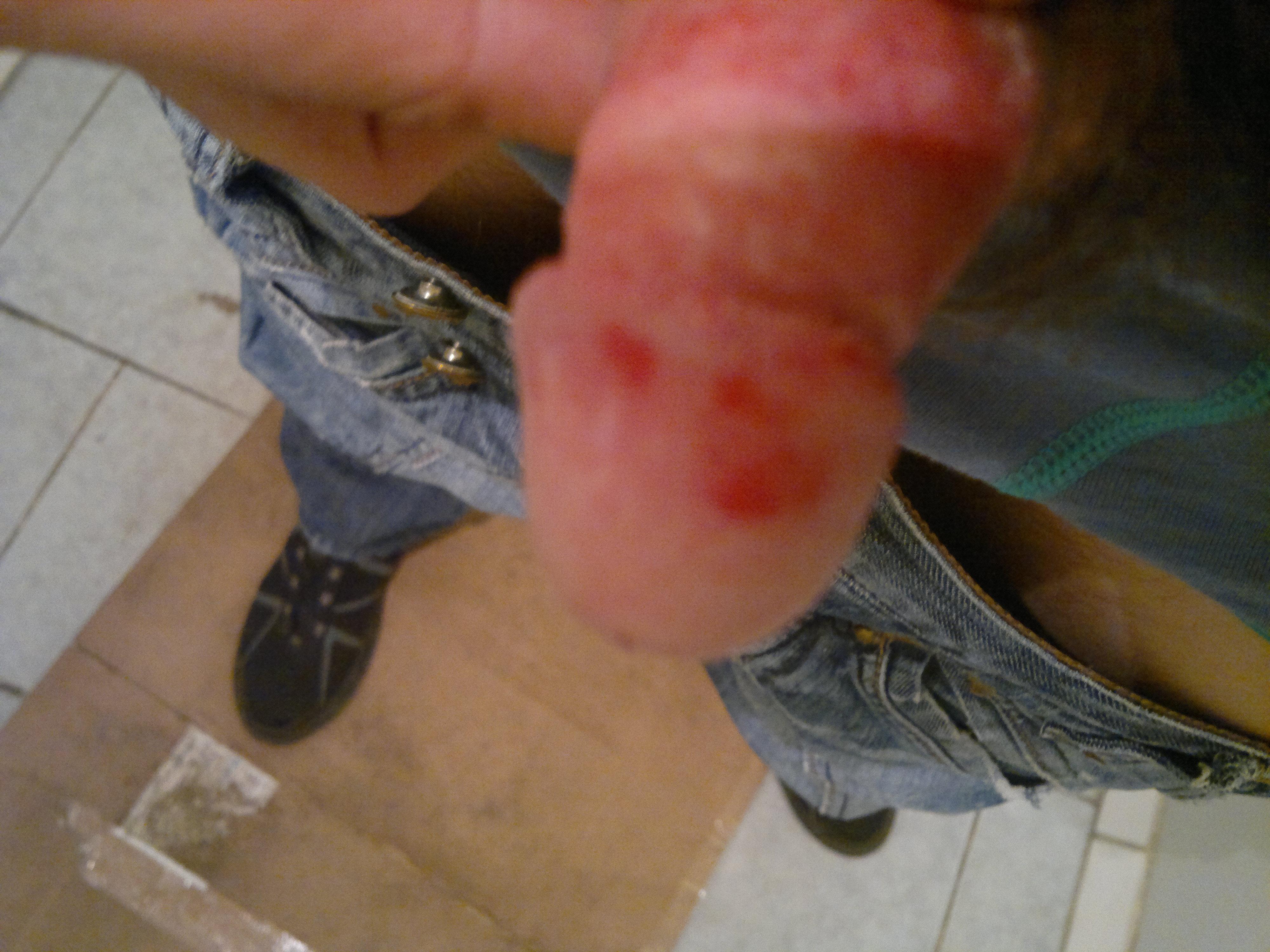 На вид похоже на потёртость, но , возможно, нечёткое фото.Делайте ванночки с отваром ромашки, со слабым р-ром " марганцовки" и после каждого мочеиспускания обрабатывайте мирамистином. Если за неделю не пройдёт, сдавайте уретральный мазок на ИППП, а секрет простаты или сперму - на бакпосев.