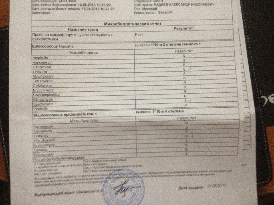 Так вот, в конце августа врач направил меня на сдачу анализов мочи и эякулята, после результатов он что-то выявил и выписал мне на 10 дней пропить Цифран и после него 15 дней Флорацид. Это я уже пропил. Прикрепил результаты анализов. Может что-нибудь подскажете в этом случае. Заранее спасибо!