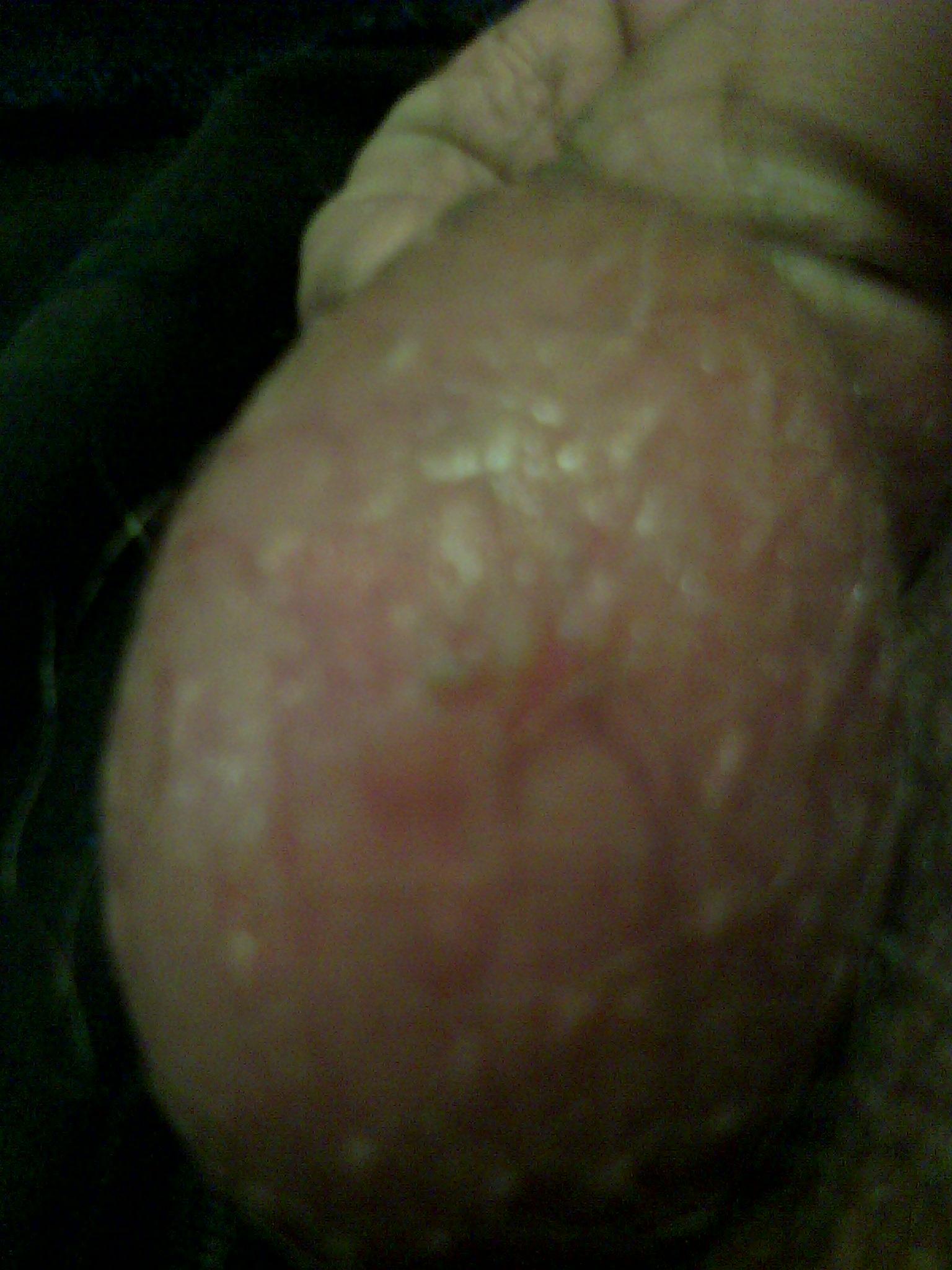 Сначала около 2х недель назад появился прыщь на головке и несколько на самом члене розовые не очень большие далее на головке он начал увеличиваться расположен он на самом верху головки чешеться переодически. И вот несколько дней назад появились твердые прыщи на яйцах и тоже переодически зудят