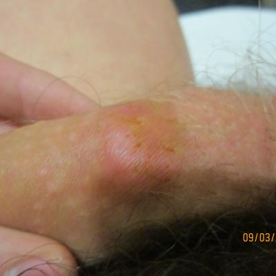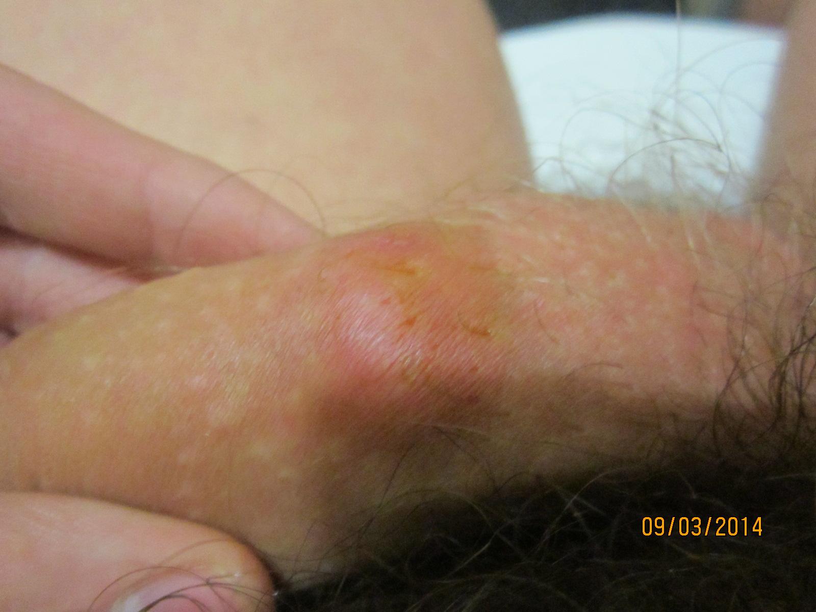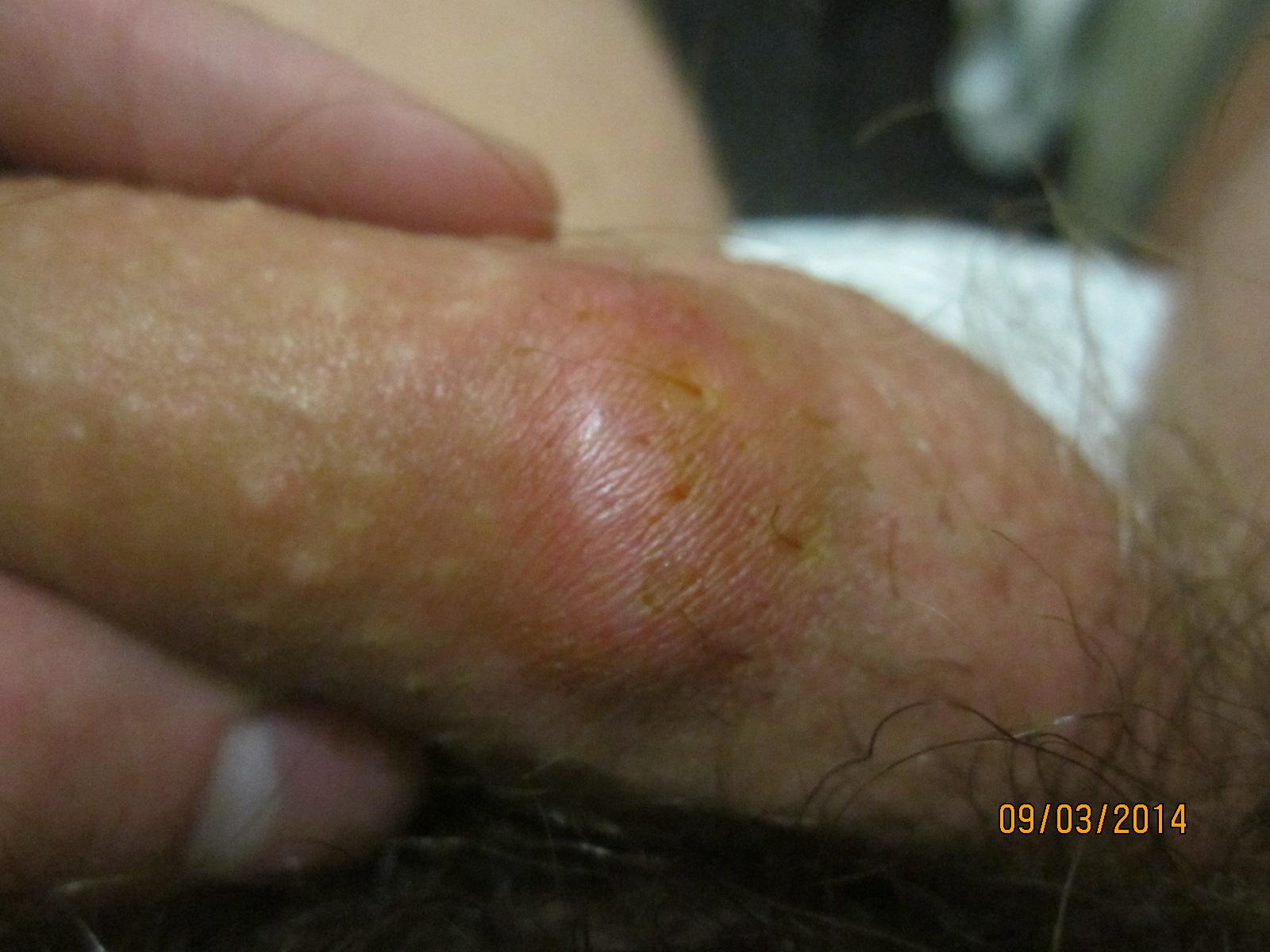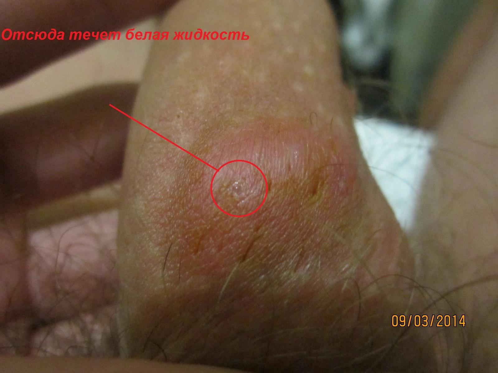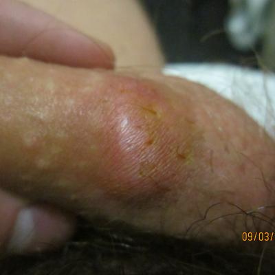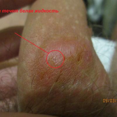 На коже полового члена прыщ. В нем копится гной и когда его много он начинает зудеть. Если выдавить, то зуд прекращается, примерно через 12 часов прыщ опять наполняется белой жидкостью и опять начинается зуд. Он (прыщ) уже две с половиной недели. После продавливания мазал йодом, зеленкой, прикладывал вату с ихтиоловой мазью - не помогает.