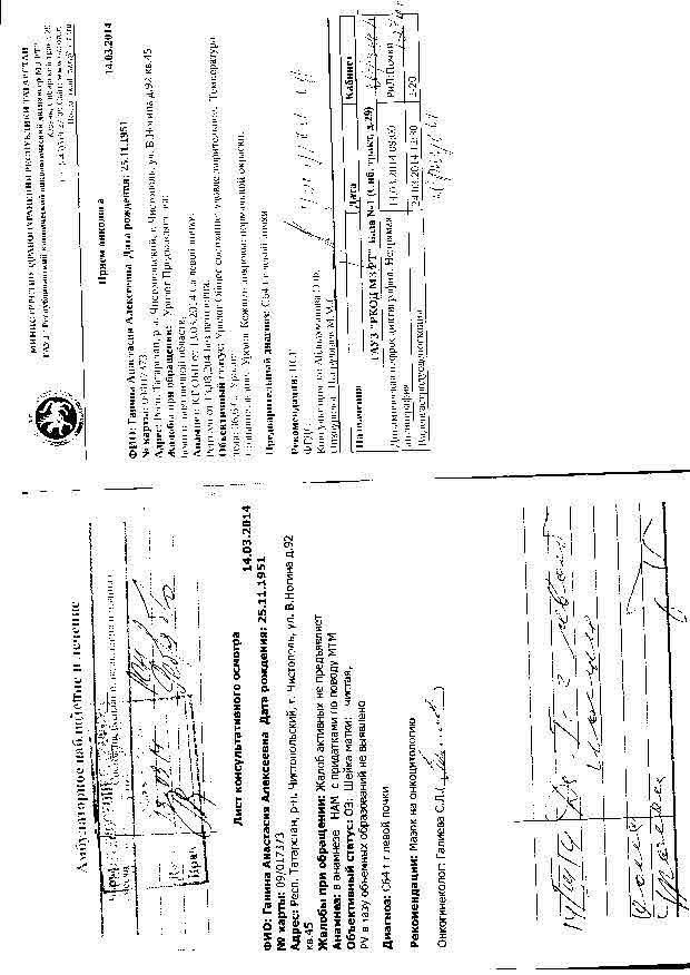 поставлен диагноз рак почки. исследования КТ - левая почка структура паренхимы неоднородная в верх/2 по задней поверхности определяется гиподенсивное образование 67*68 мм, умеренно вдающееся в синус, в паранефрий интимно прилежит к нижнему полюсу селезенки. При в\в КУ неоднородно интенсивно накапливает контраст. ЧЛС не деформирована, без признаков эктазии.