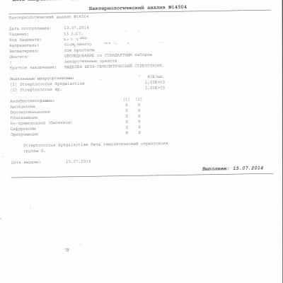 Выделен БЕТА-ГЕМОЛИТИЧЕСКИЙ СТРЕПТОКОКК.