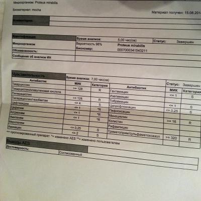 Спасибо, ваш ответ привнес некоторую ясность! Расшифруйте пожалуйста полученный анализ мочи на бакпосев(см. фото ниже), что за бактерия, есть ли чувствительность к антибиотикам? Мне посоветовали пропить Супракс Солютаб, а потом Уро-ваксом. Половому партненру только сперму на бакпосев, а мазки или еще что на инфекции какие?