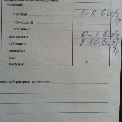 УРЕТРА: Эпителий7-10, Лейкоциты 0-3, Палочковые формы бактерий: в умеренном количестве, Gardnerella vag.(ключевые клетки)-нет, Трихомонады-нет, Neisseria gonorrheae-нет.