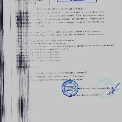Приложение: Выписки из истории болезни и уретроцистоскопия.