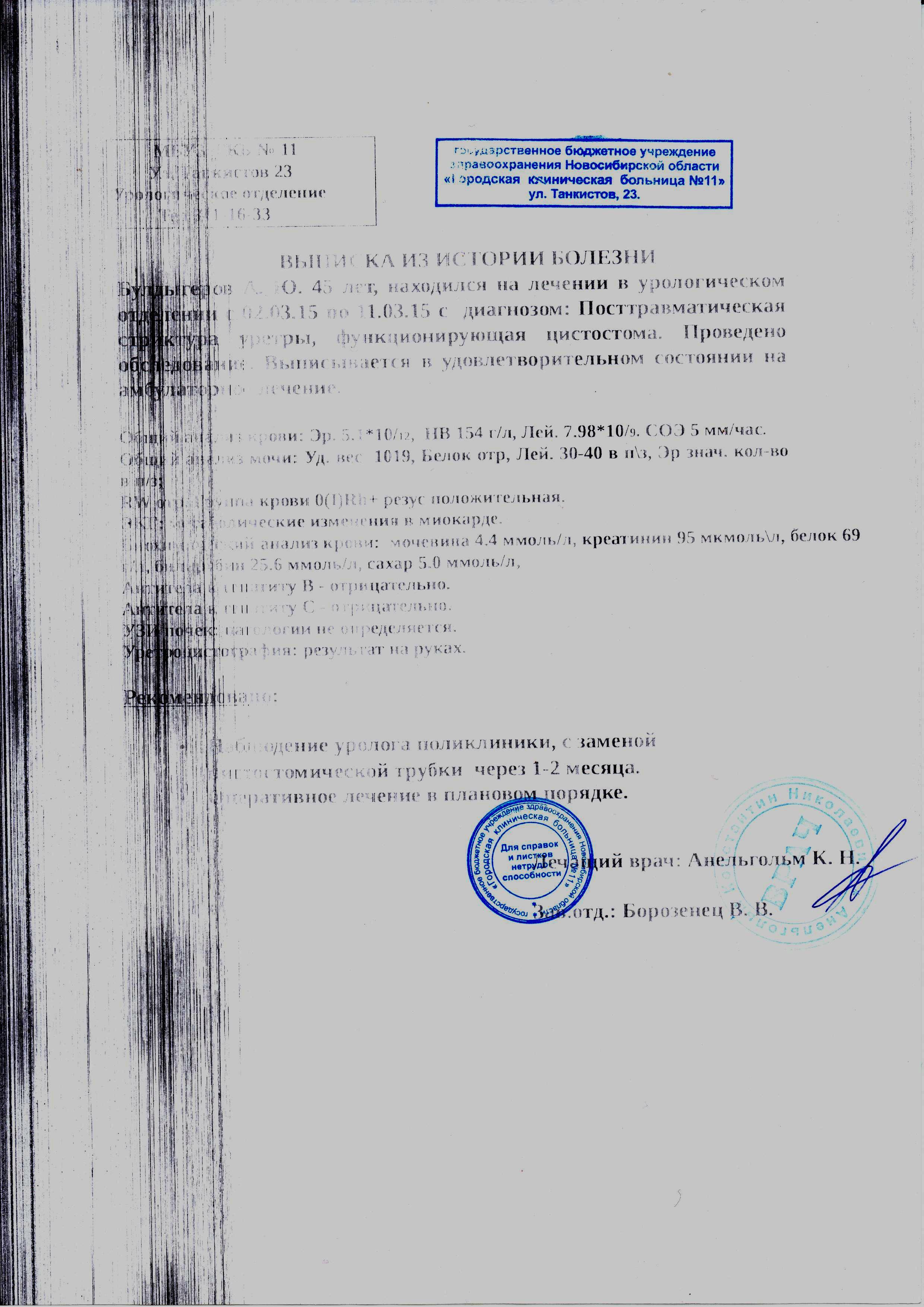 В марте 2015 г. я был обследован в урологическом отделении Новосибирской больницы.