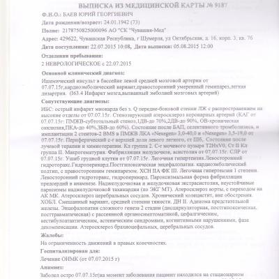 НАЗНАЧИЛИ ОПЕРАЦИЮ, НО У НЕГО СЛУЧИЛСЯ ИШЕМИЧЕСКИЙ ИНСУЛЬТ В БАССЕЙНЕ ЛЕВОЙ СРЕДНЕЙ МОЗГОВОЙ АРТЕРИИ ОТ 07.07.15., КАРДИОЭМБОЛИЧЕСКИЙ ВАРИАНТ,ПРАВОСТОРОННИЙ УМЕРЕННЫЙ ГЕМИПАРЕЗ,ЛЁГКАЯ ДИЗАРТРИЯ(163.4 ИНФАРКТ МОЗГА,ВЫЗВАННЫЙ ЭМБОЛИЕЙ МОЗГОВЫХ АРТЕРИЙ).