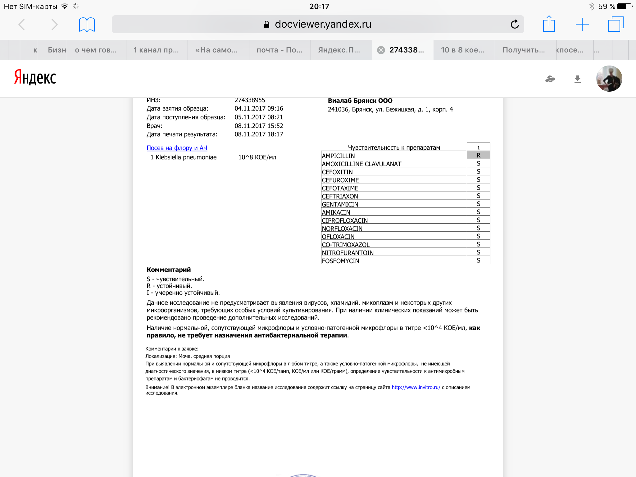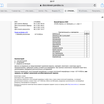 Добрый день. Сдала бак пасёт, обнаружилась klebsiella+pneumoniae+10+в+8+кое, устойчивый только к ампициллин. На протяжении 2 недель жжение в мочеиспускательном канале и влагалице (обнаружена молочница и уреаплазма), лечение не принимала так как сейчас в стадии кишечног отравления по симптомам (диарея, рвота, высокая температура). Какова может быть схема лечения. И может ли эта инфекция развиться в других органах? Заранее спасибо!