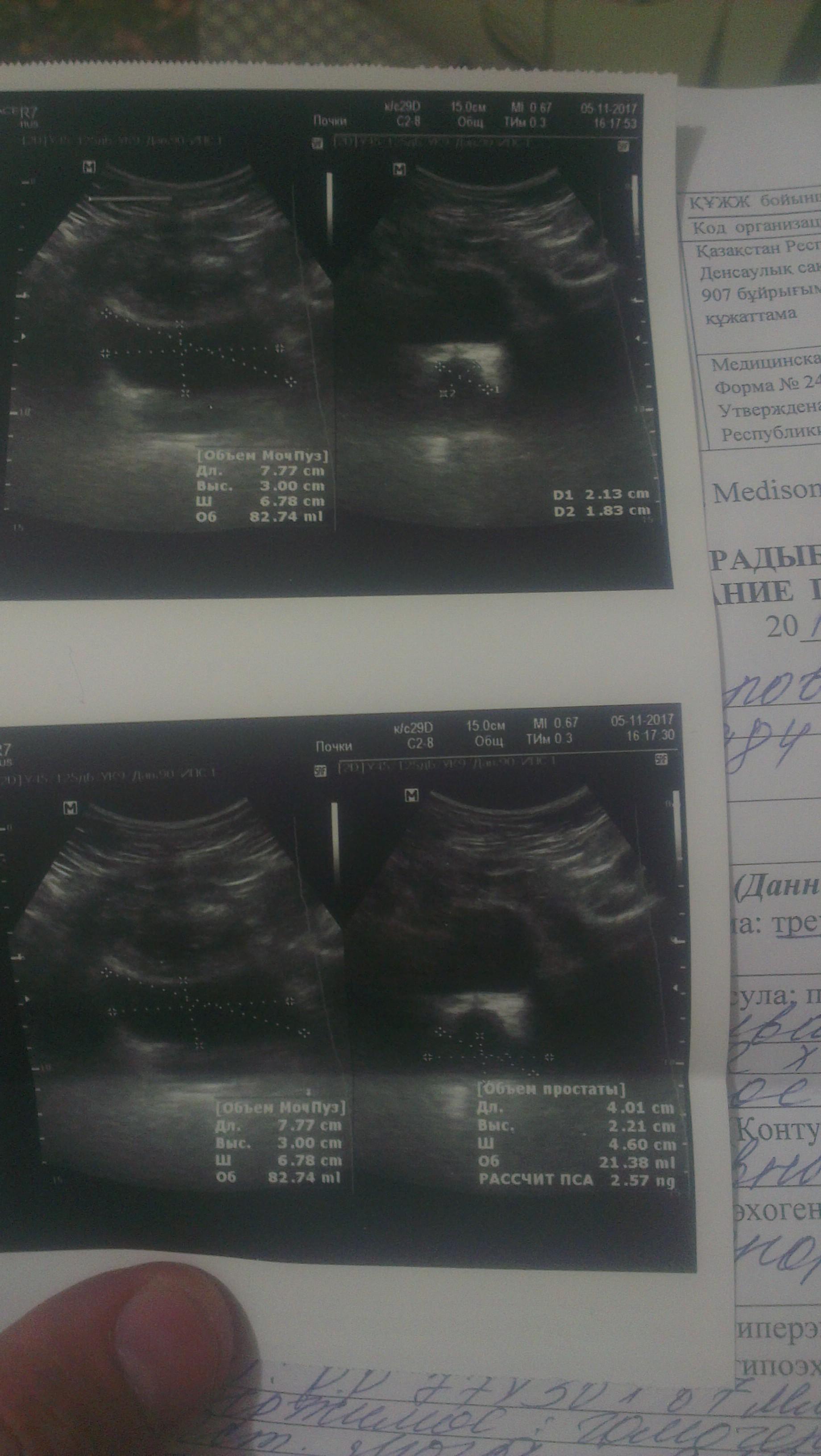 Добрый день! Сделал УЗИ простаты, поставили диагноз хронический простатит и киста простаты. Объем простаты: дл.- 4.01 см., выс. - 2.21 см., шир. - 4.60 см., объем - 21.38. Киста: D1 -2.13 см, D2 - 1.83 см. Верен ли поставленный диагноз и что делать с кистой? Заранее спасибо за ответ!