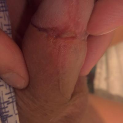 Доброго времени суток. Ситуация: 09.11.2017 было проведено обрезание "под головку", сняты швы на 10 день после операции. На данный момент образовалась ранка на месте уздечки. Уверен, что уролог ее видел во время снятия швов, но ничего не сказал по этому поводу. Визуально она не эпителизируется [фото прилагаю], хотя остальной шов уже практически не беспокоит. Стоит ли подождать или в ближайшее время обратиться к хирургу, проводившему операцию и решить вопрос о наложении повторных швов?