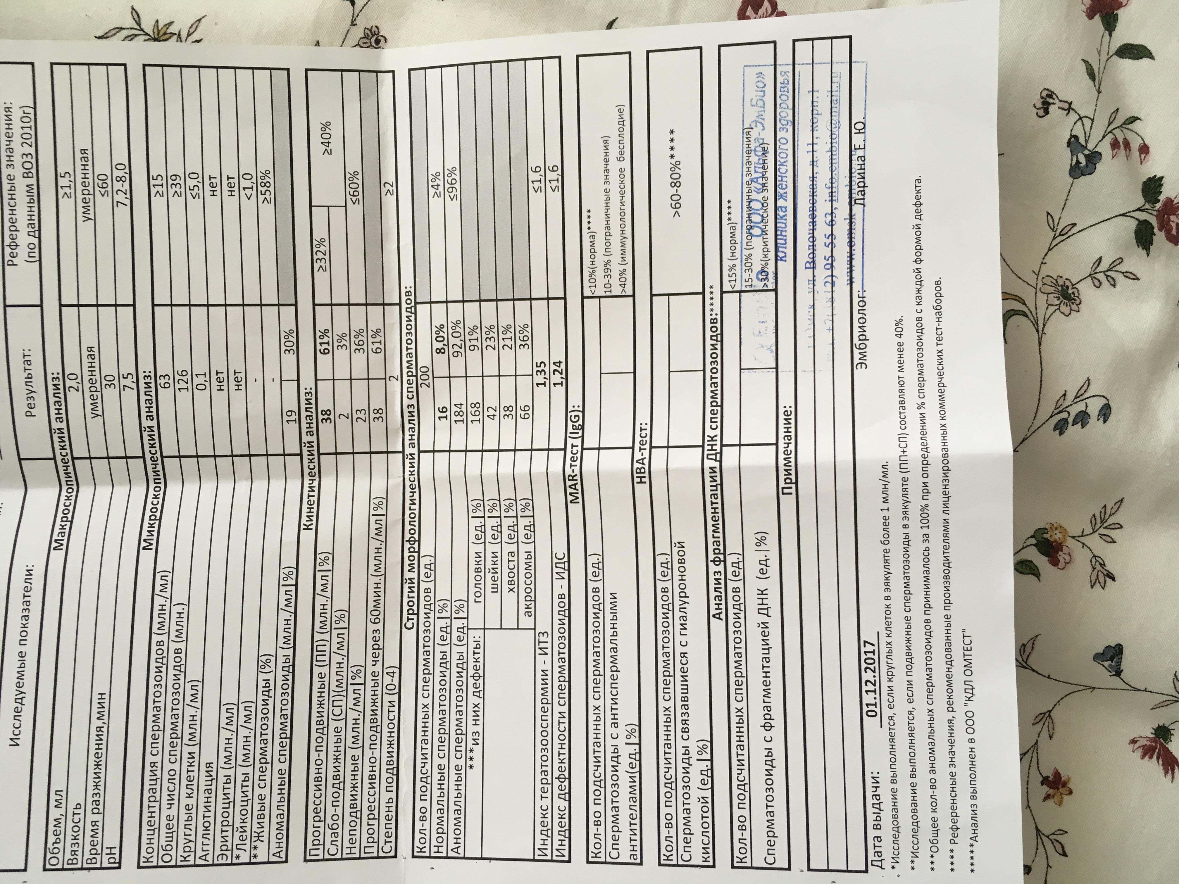 Здравствуйте, уже ранее на ваш сайт писал, но так и не получил ответа. Помогите расшифровать значения спермограммы и есть-ли проблема в естественном зачатии? Спасибо. Файл с анализом прилагаю.